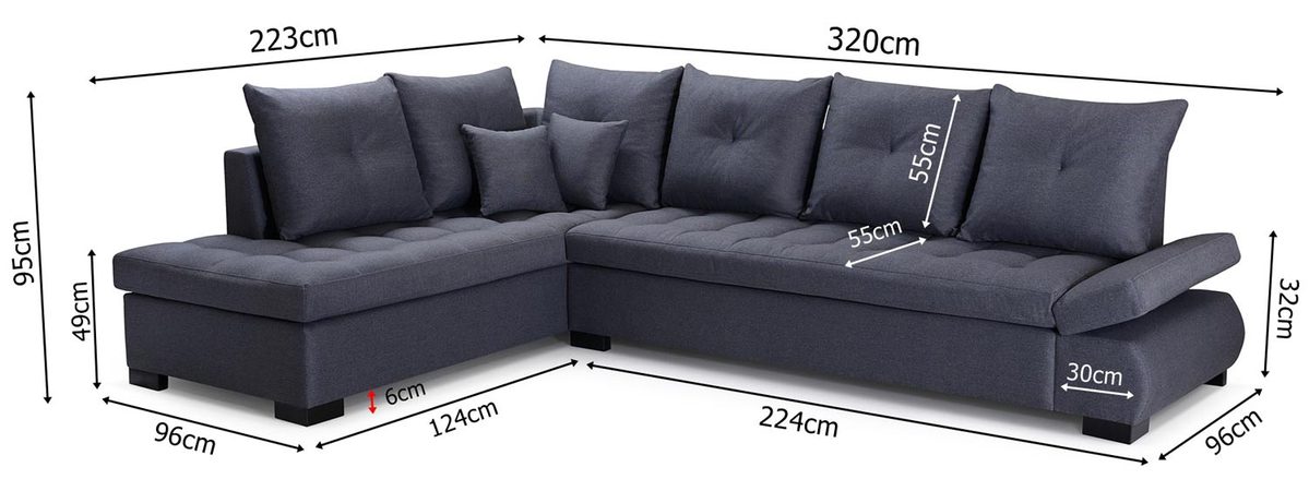 Co najważniejsze wygodny narożnik z poduszkami NAOMI zagwarantuje doskonały komfort wypoczynku, a ponadto zaprezentuje się bardzo efektownie i wzbogaci wnętrze. Ponadto model ten dostępny w szerokiej gamie kolorystycznej tkanin obiciowych z łatwością dopasuje się do zastosowanej aranżacji. Dodatkowo prezentowany model nie posiada funkcji spania ani pojemnika na pościel, ale zdecydowanie wynagradza to swoim nienagnanym wyglądem i wysoką jakością wykonania.
