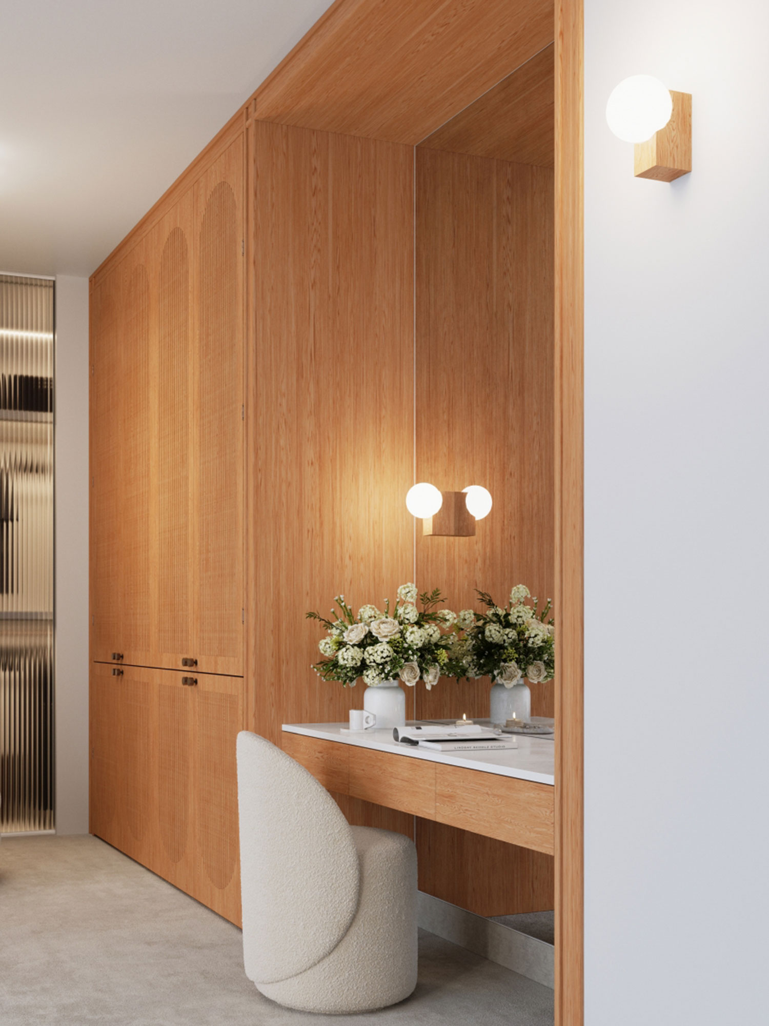 - Naturalne materiały: drewno i szkło tworzą elegancką i ponadczasową kompozycję.