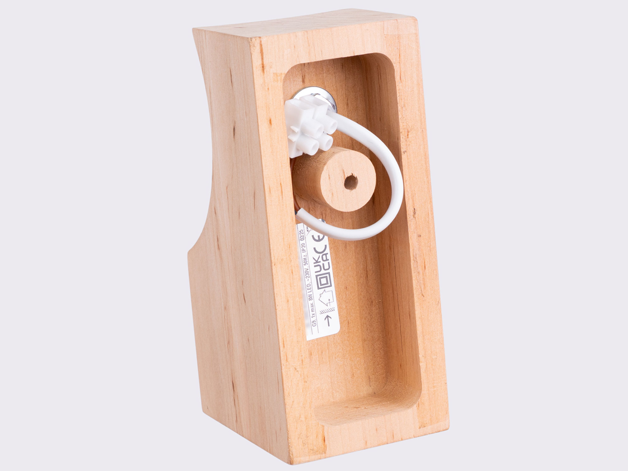 Wymiary kinkietu (12/16/17 cm) sprawiają, że jest on kompaktowy i łatwy do zamontowania w różnych przestrzeniach: nad lustrem w łazience, obok łóżka w sypialni, w korytarzu czy jako dodatkowe źródło światła w salonie. Jego klosz o wymiarach 12/12 cm idealnie rozprasza światło, a naturalna kolorystyka drewna podkreśla elegancję i prostotę całej formy.