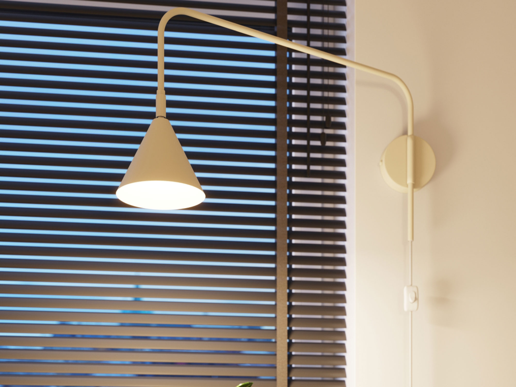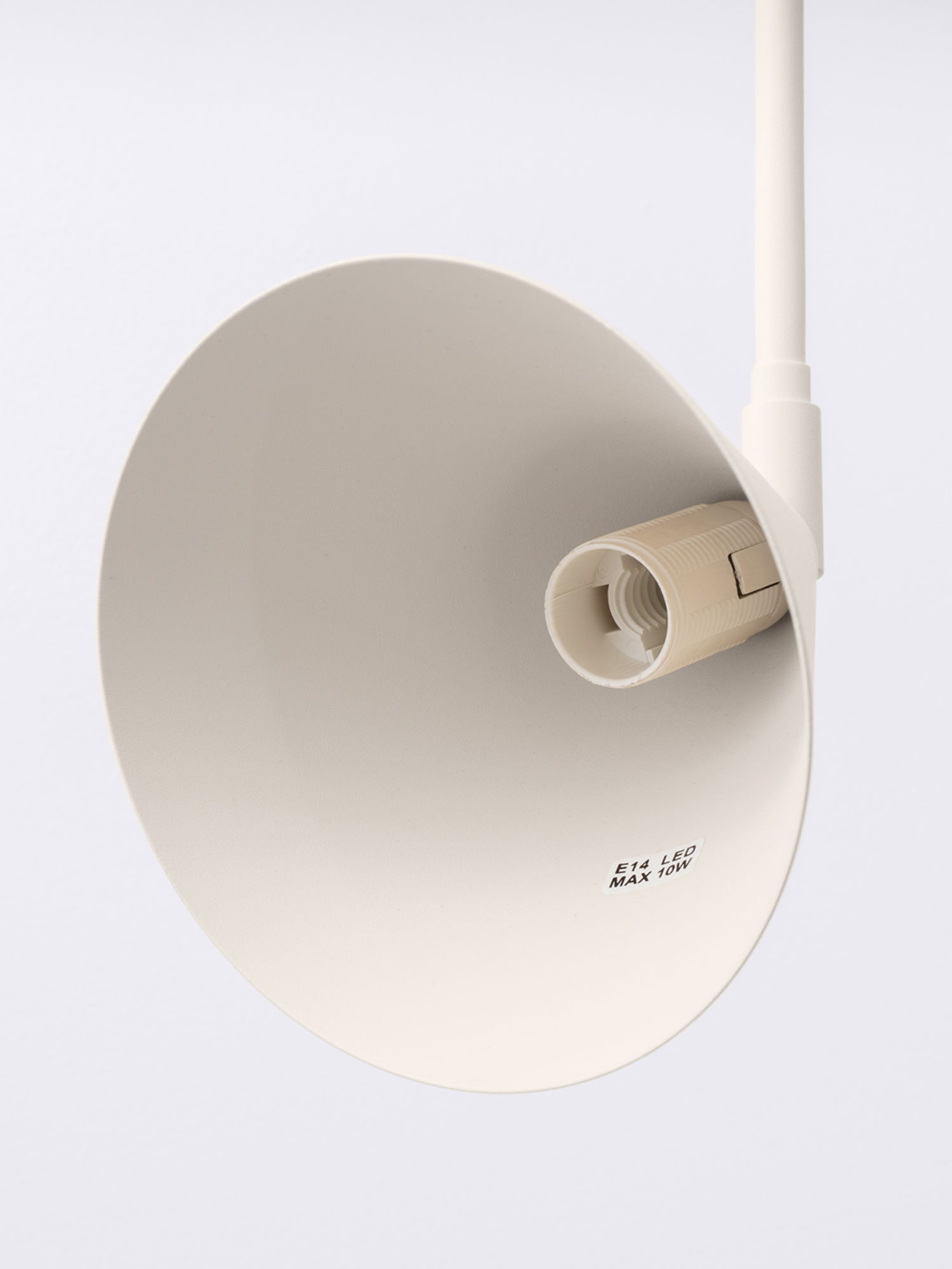 Klosz o wymiarach 14×12 cm osadzony jest na długim ramieniu o długości 61 cm, co pozwala równomiernie rozproszyć światło i stworzyć przyjemny nastrój. Dzięki gwintowi E14 użytkownik ma możliwość dobrania żarówki LED, co pozwala dopasować intensywność i barwę światła do indywidualnych potrzeb – od ciepłej, relaksującej po neutralną, idealną do pracy.