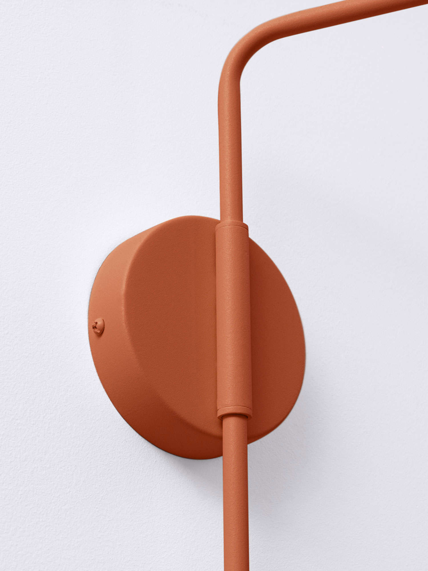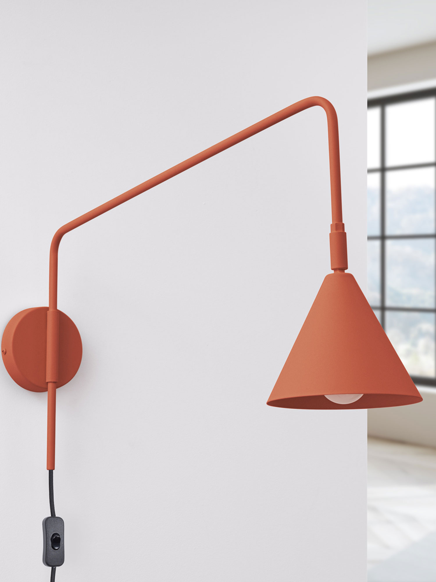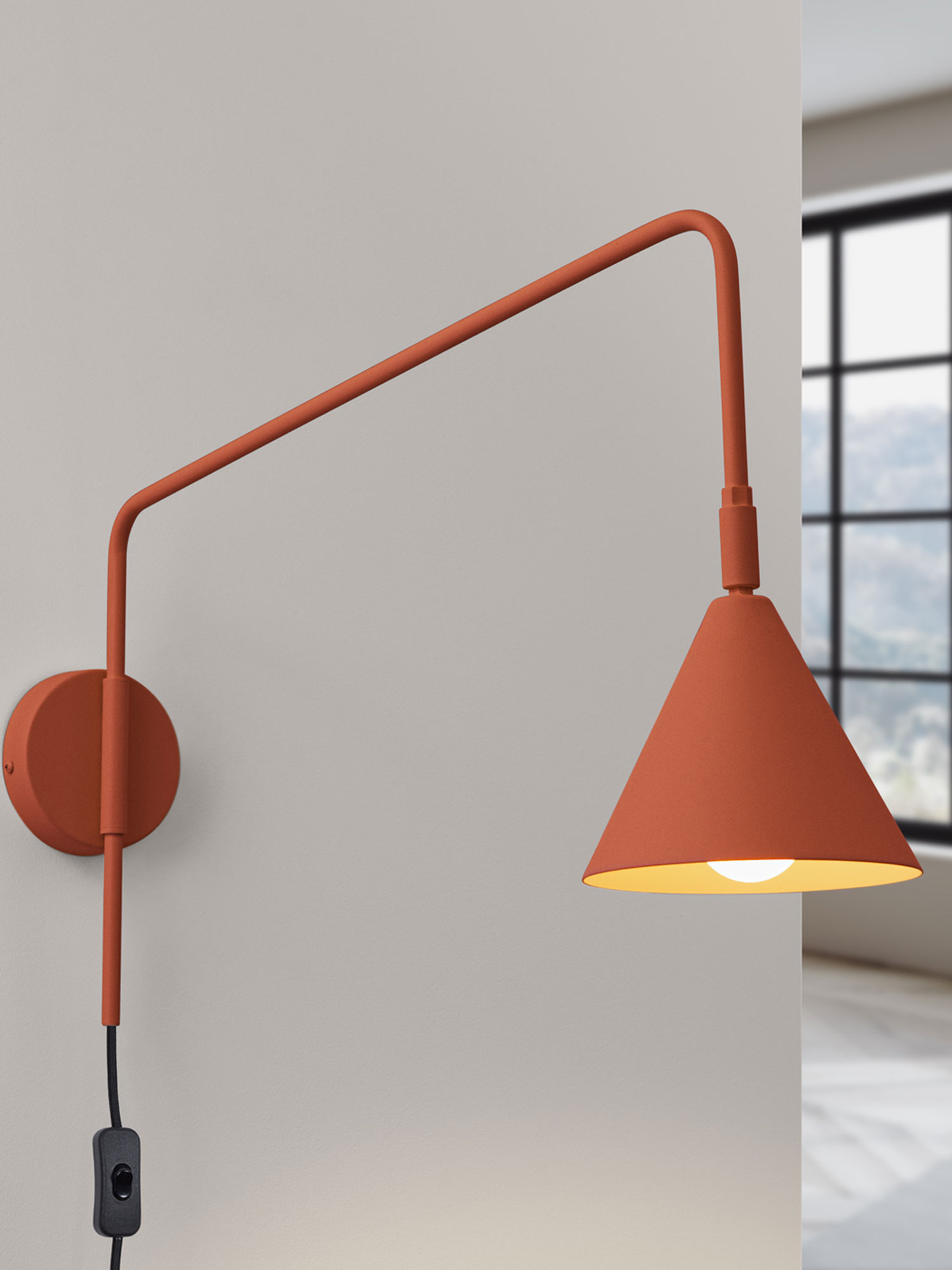 Ochra czerwona to kolor z charakterem – odważny, a jednocześnie elegancki. Z jednej strony podkreśla nowoczesny charakter wnętrza, a z drugiej wprowadza do niego ciepło i przytulność. Kinkiet NOREN w tej wersji kolorystycznej doskonale komponuje się z ciemnym drewnem, czarnymi dodatkami, a także z jasnymi ścianami, tworząc kontrast pełen harmonii.