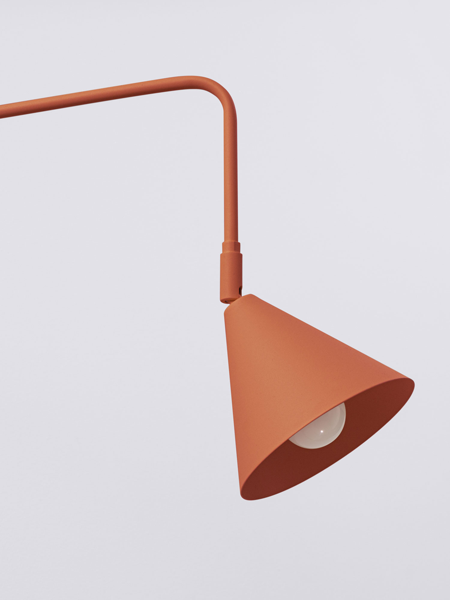 Wykonany z wysokiej jakości stali kinkiet NOREN w kolorze ochry czerwonej to prawdziwa ozdoba ściany. Dzięki zastosowaniu smukłej formy (61 cm szerokości) oraz klosza o średnicy 14 cm, światło jest równomiernie rozpraszane, nadając wnętrzu przyjemnego klimatu. Ten kinkiet sprawdzi się zarówno w roli oświetlenia uzupełniającego, jak i jako centralny punkt aranżacji w salonie, sypialni, korytarzu czy jadalni.