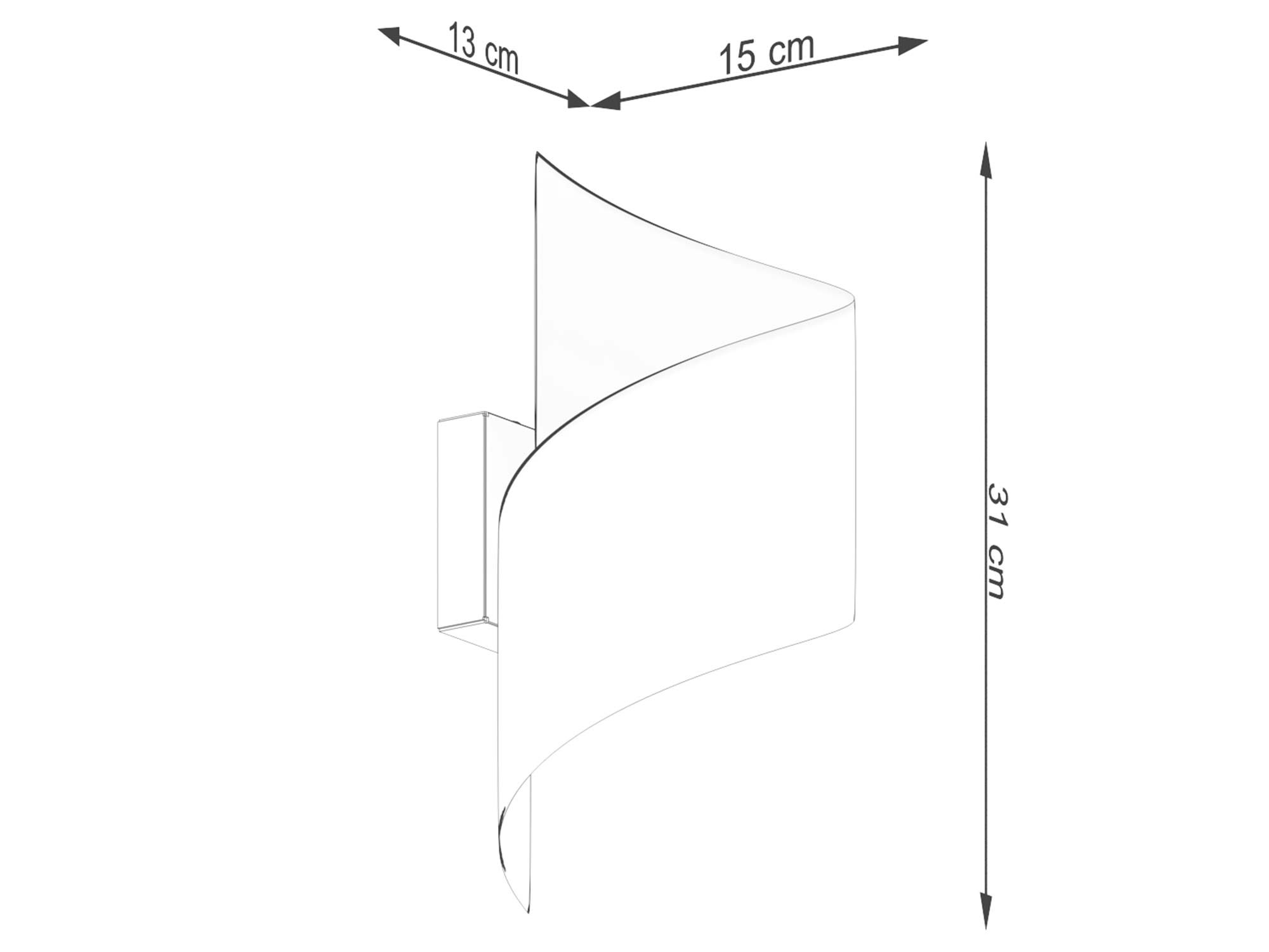 Kompaktowe wymiary (15/13/31 cm) sprawiają, że kinkiet doskonale nadaje się do mniejszych pomieszczeń – sypialni, korytarzy czy biur – ale równie dobrze sprawdzi się jako dodatkowe źródło światła w salonie lub jadalni. To idealny sposób, aby dodać wnętrzu głębi i klimatu.