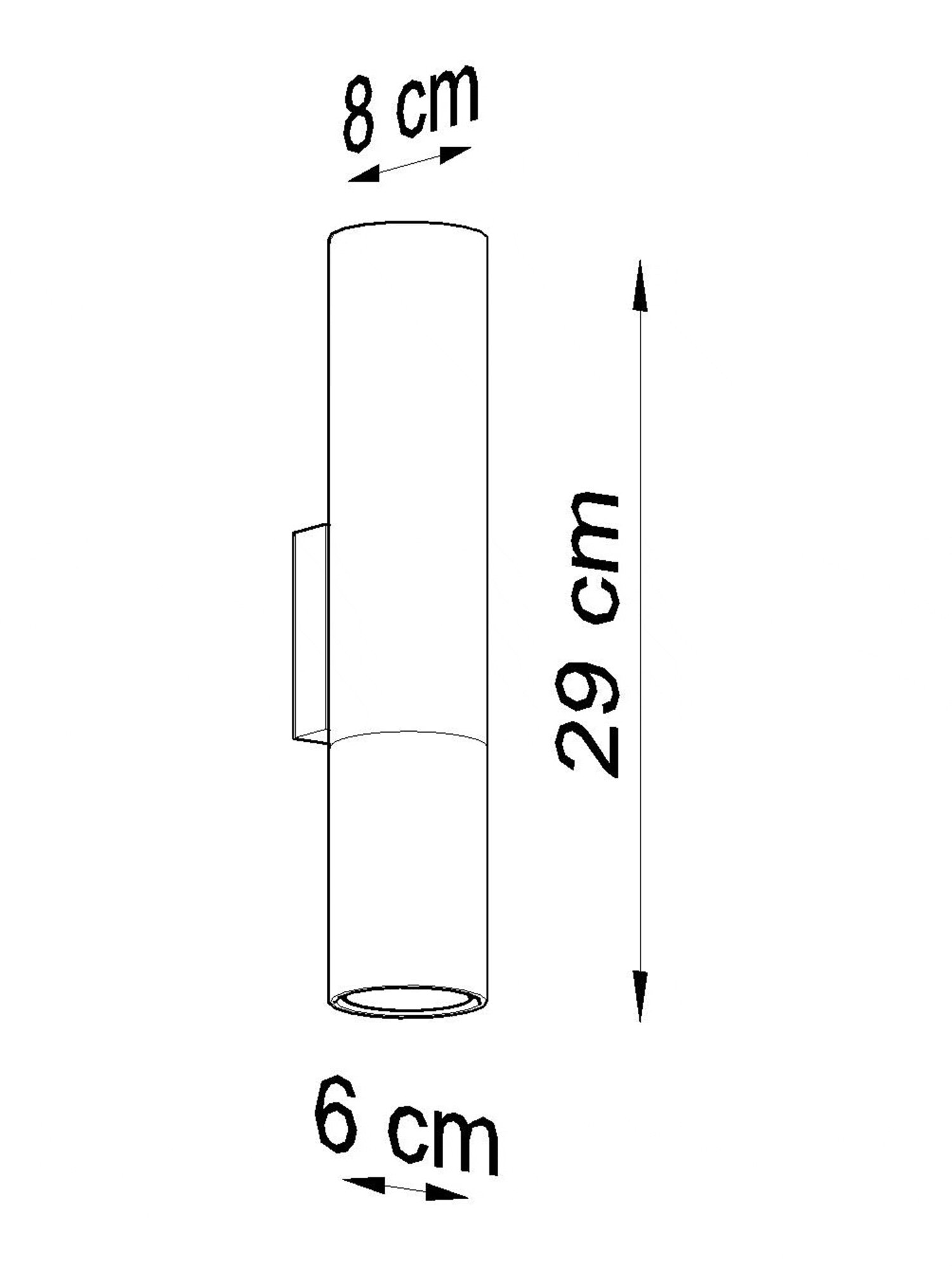 Tuba ścienna LED o długości 29 cm – rysunek techniczny