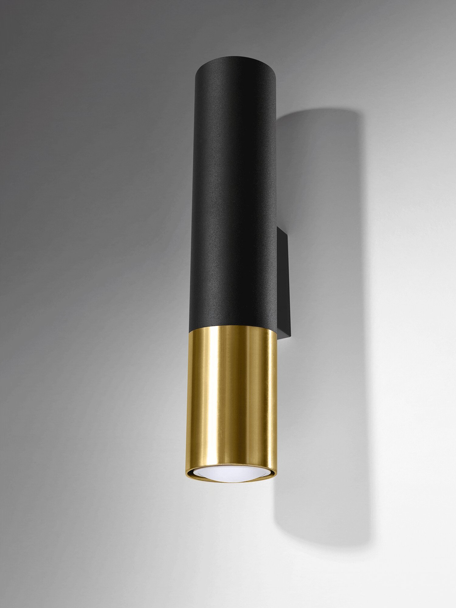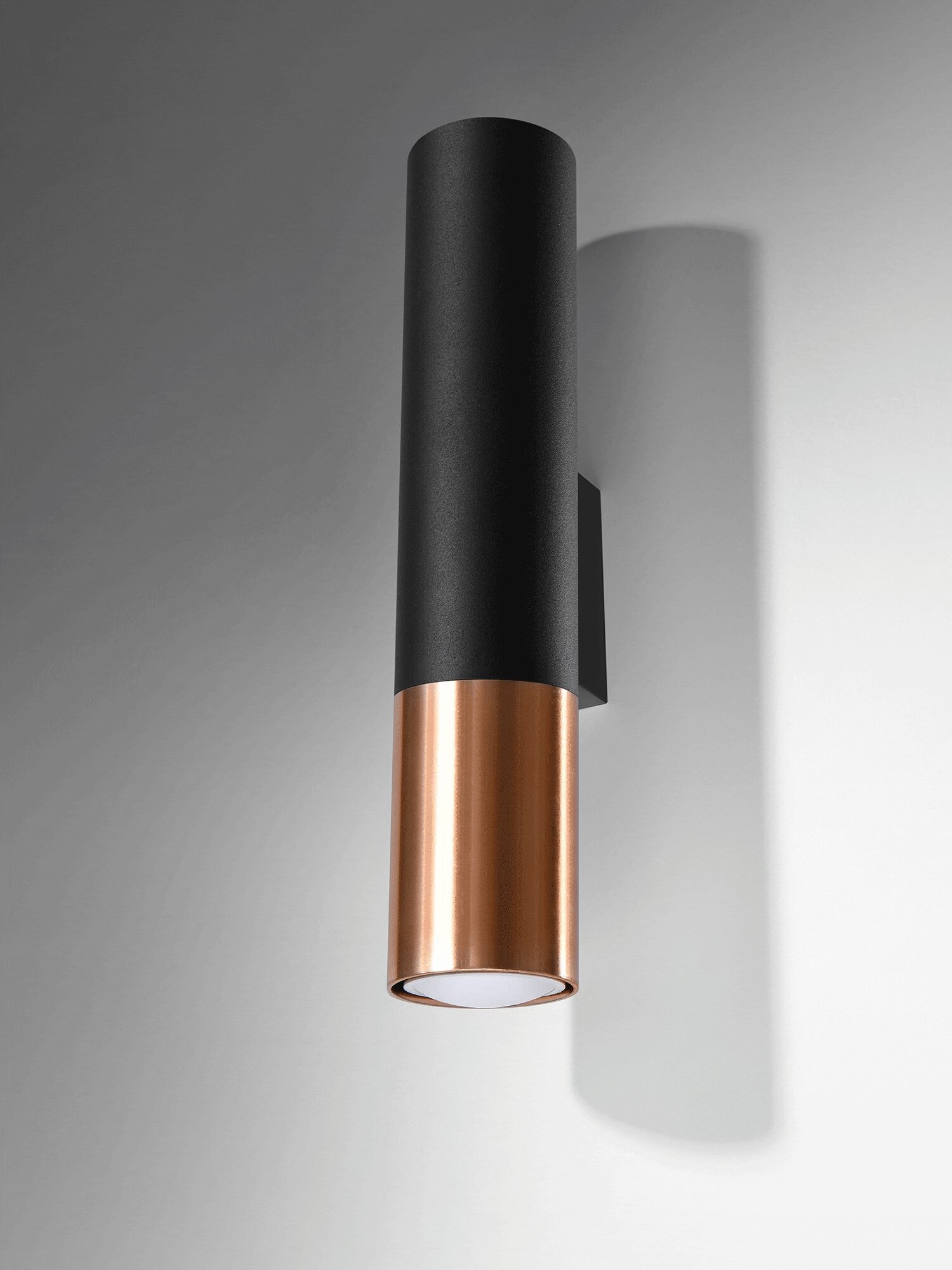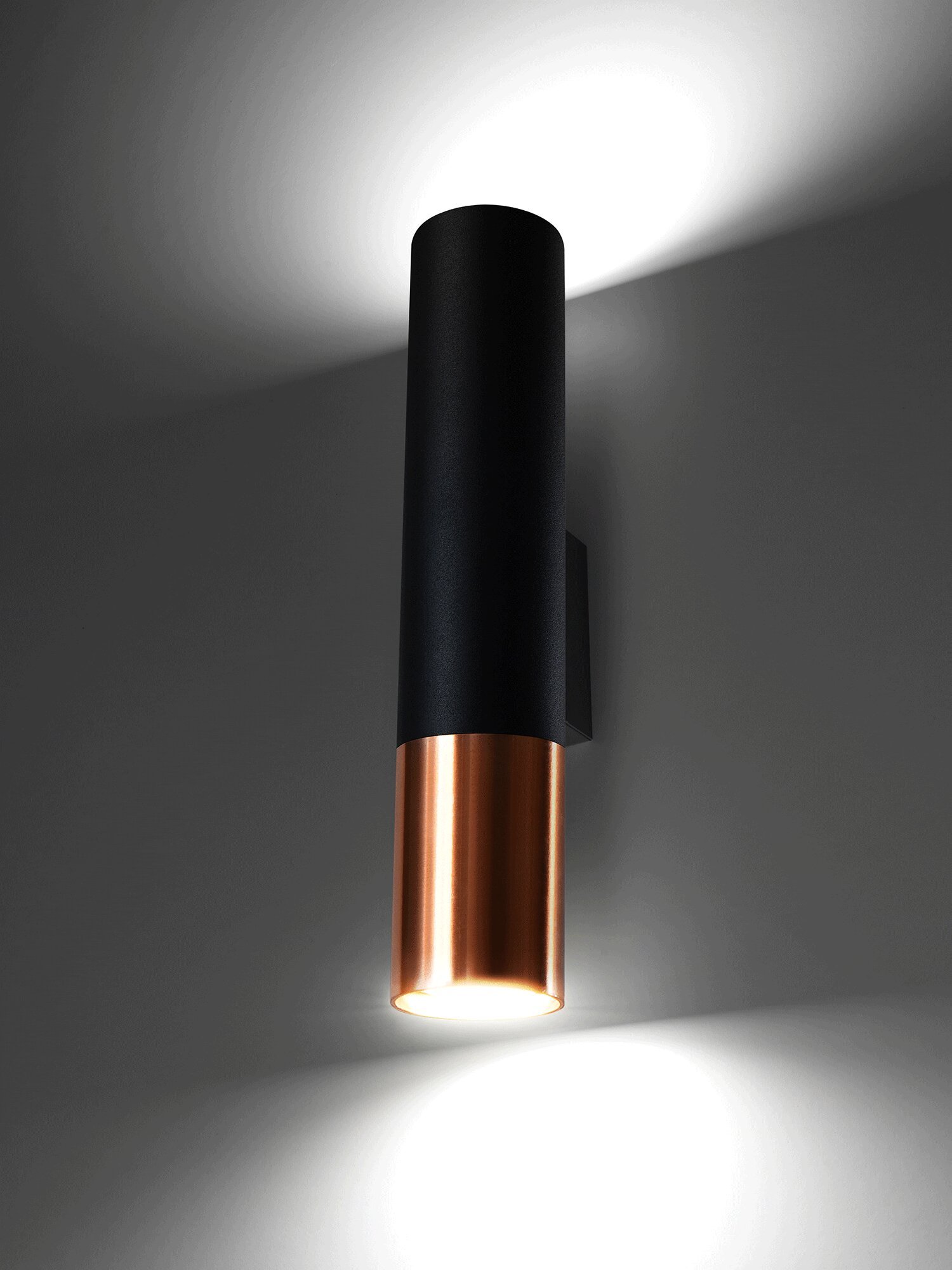 Kinkiet LED czarny z dolnym światłem i miedzianym detalem