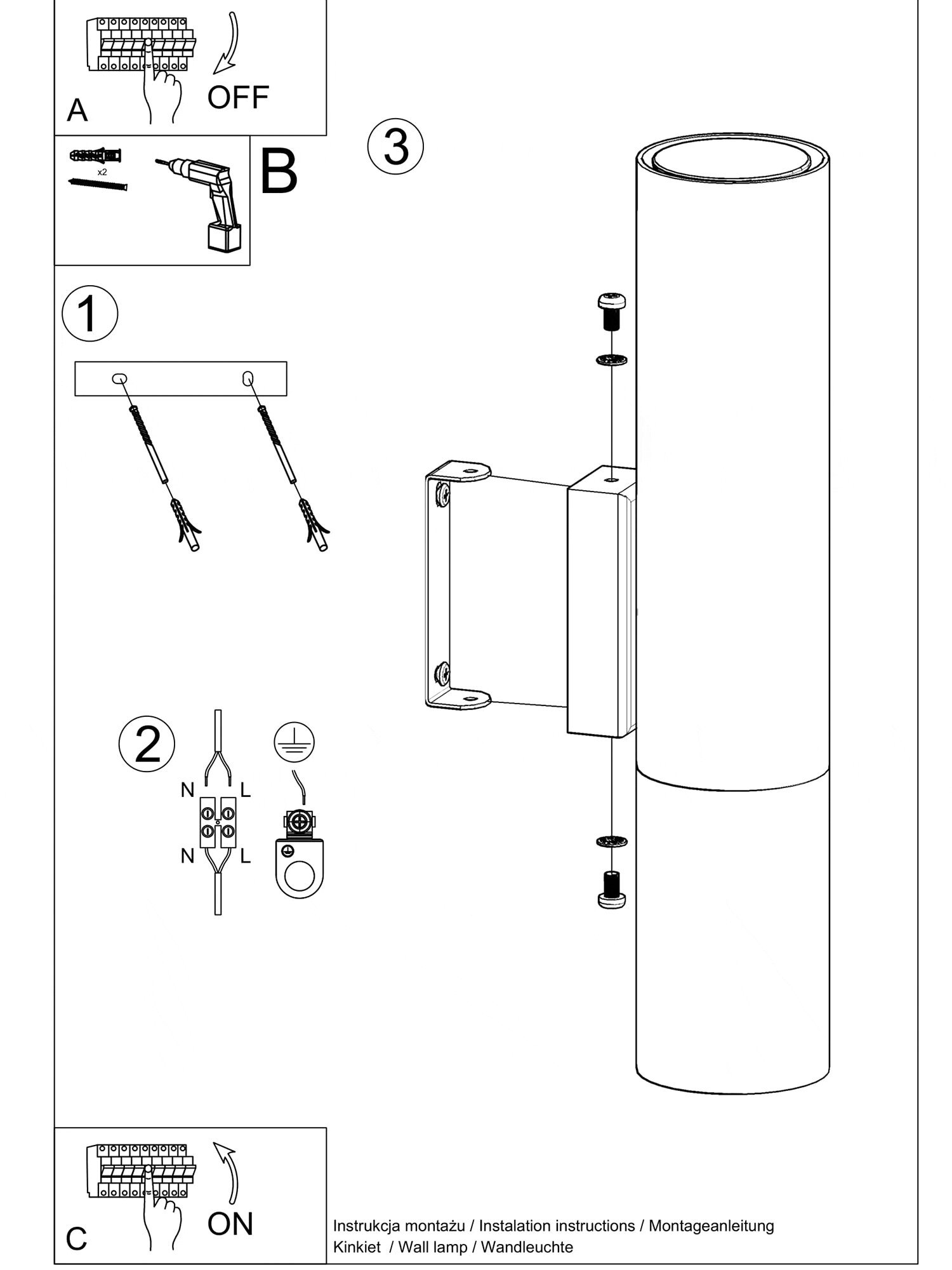 Źródło światła: GU10, 2x40W, 2x12W LED, 50-60Hz, ~220-230V, IP20, klasa ochronności I