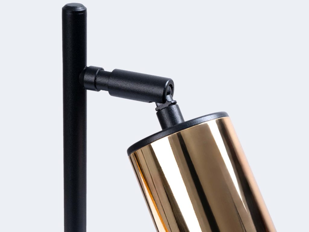 Złote wnętrze klosza nie tylko ociepla emitowane światło, ale również wprowadza do wnętrza wyjątkową atmosferę. To połączenie praktyczności z estetyką sprawia, że lampa idealnie nadaje się do wnętrz urządzonych w stylu nowoczesnym, loftowym, a także glamour. Uniwersalny charakter sprawia, że świetnie odnajdzie się zarówno w przestrzeniach domowych, jak i biurowych.