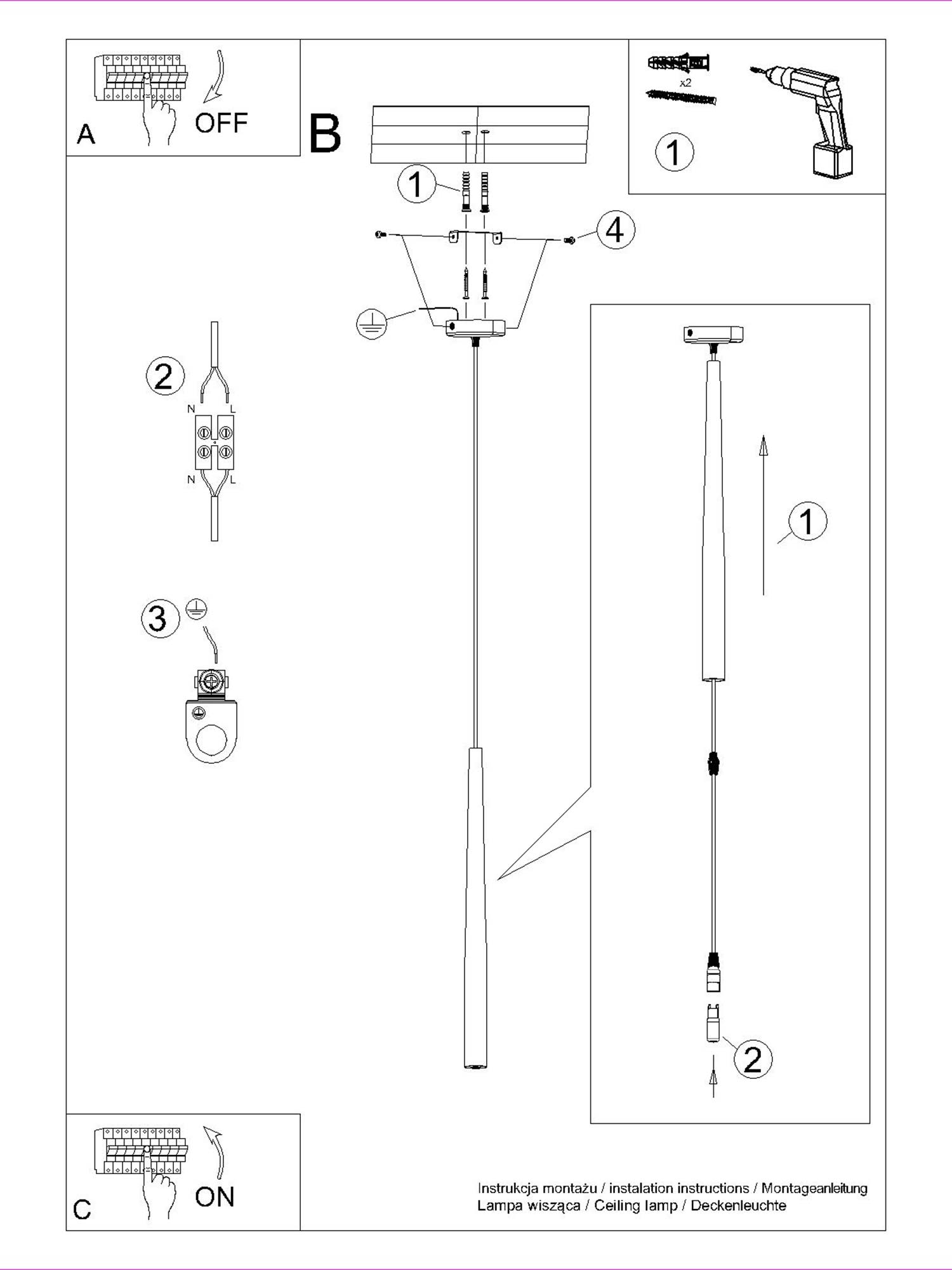 Prosty, cylindryczny klosz o wymiarze 44/3 cm subtelnie kieruje światło w dół, tworząc przytulny nastrój i jednocześnie podkreślając nowoczesną estetykę. To idealne rozwiązanie nad stół w jadalni, wyspę kuchenną czy jako oświetlenie punktowe w salonie.