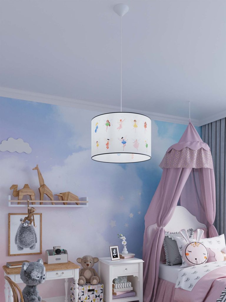 Materiał PVC zapewnia trwałość i łatwość w utrzymaniu czystości. Lampa doskonale wpisuje się w nowoczesne trendy wnętrzarskie, szczególnie w aranżacje młodzieżowe, boho czy eklektyczne. Może stać się centralnym punktem dekoracyjnym lub uzupełniać inne elementy wystroju.