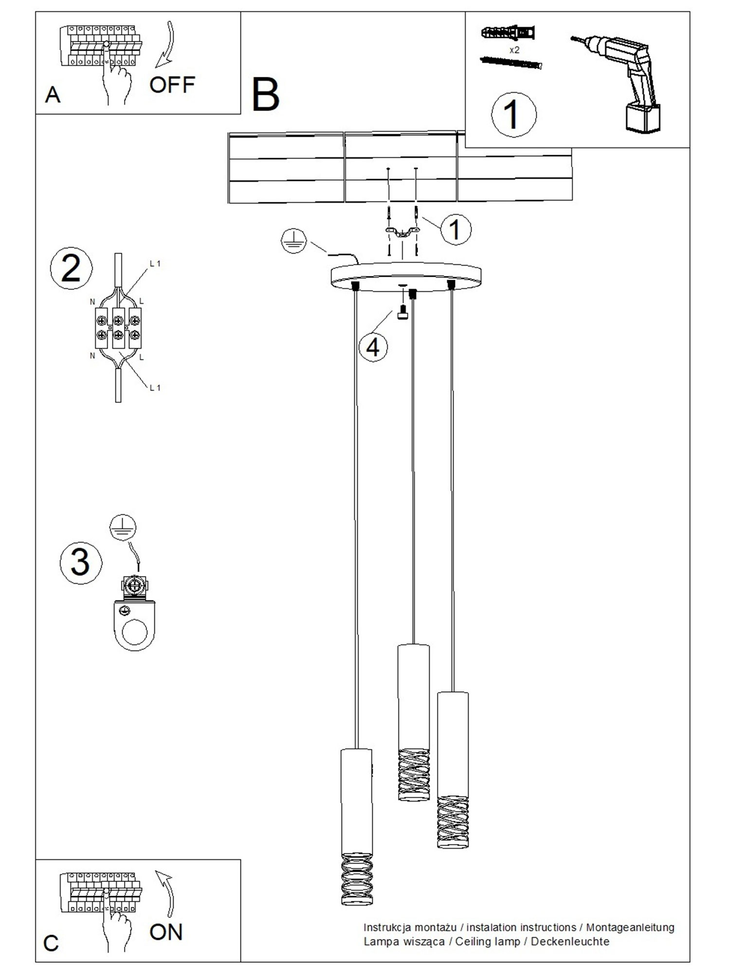 - Trzy źródła światła – zapewniają równomierne oświetlenie większej przestrzeni.