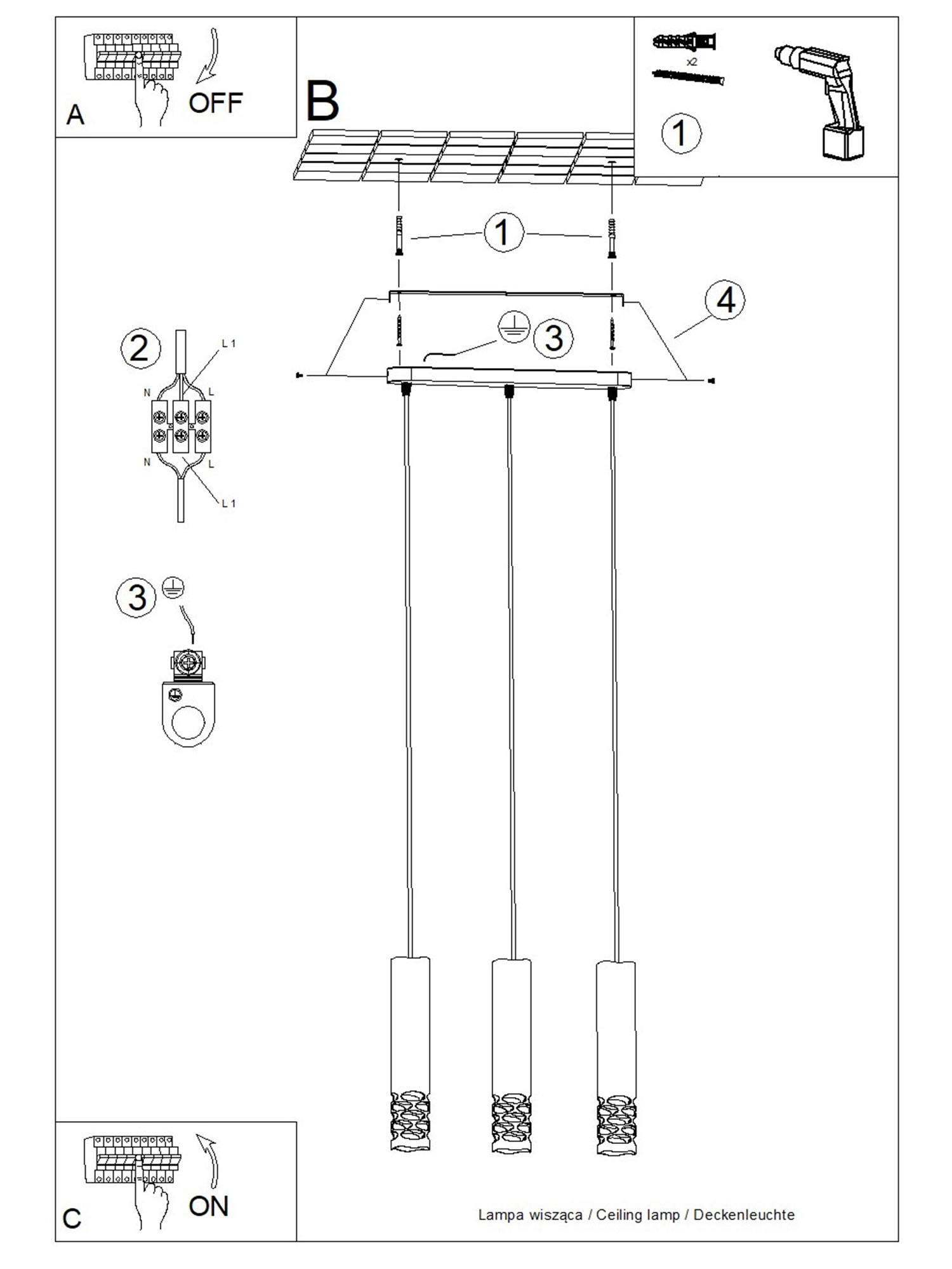 Trzy źródła światła GU10 zapewniają odpowiednie doświetlenie nawet większych przestrzeni, a stalowa konstrukcja gwarantuje trwałość na lata. To nie tylko praktyczne oświetlenie, ale także element dekoracyjny, który podkreśli charakter Twojego salonu, jadalni czy kuchni.