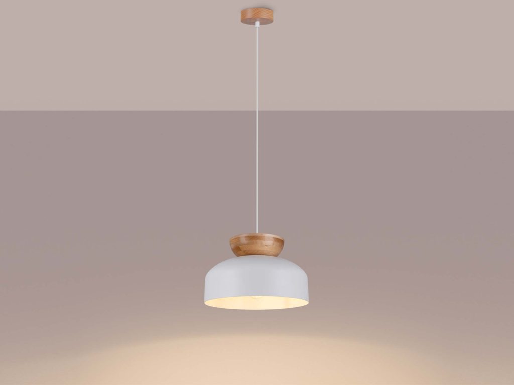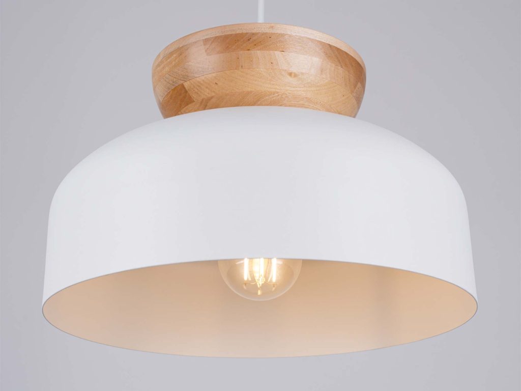 Lampa wisząca MARLA – połączenie bieli i drewna