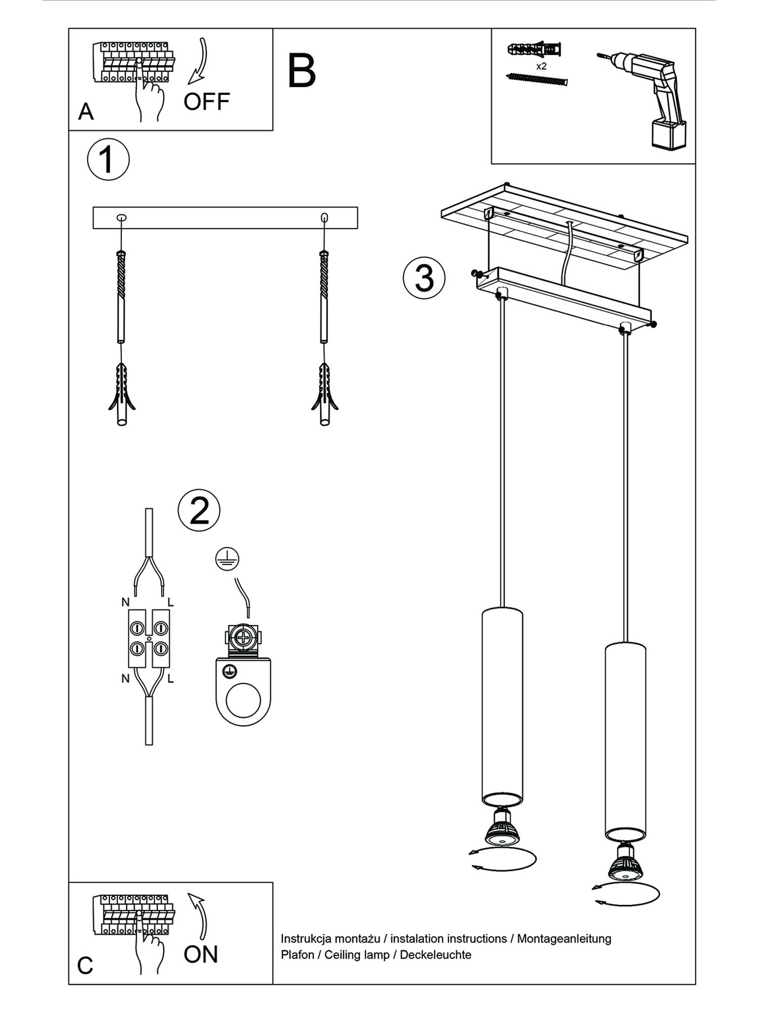 - Ilość źródeł światła: 2