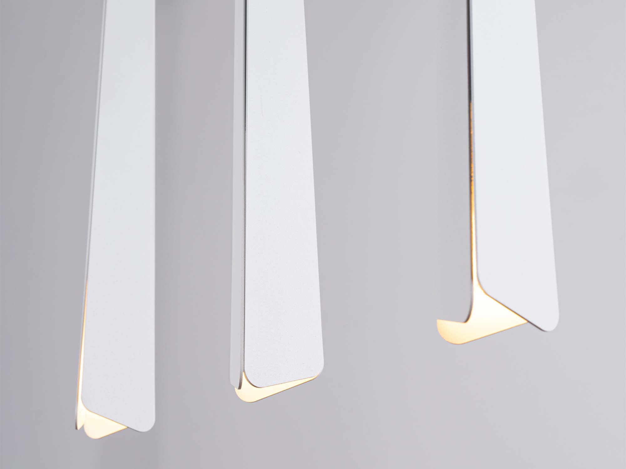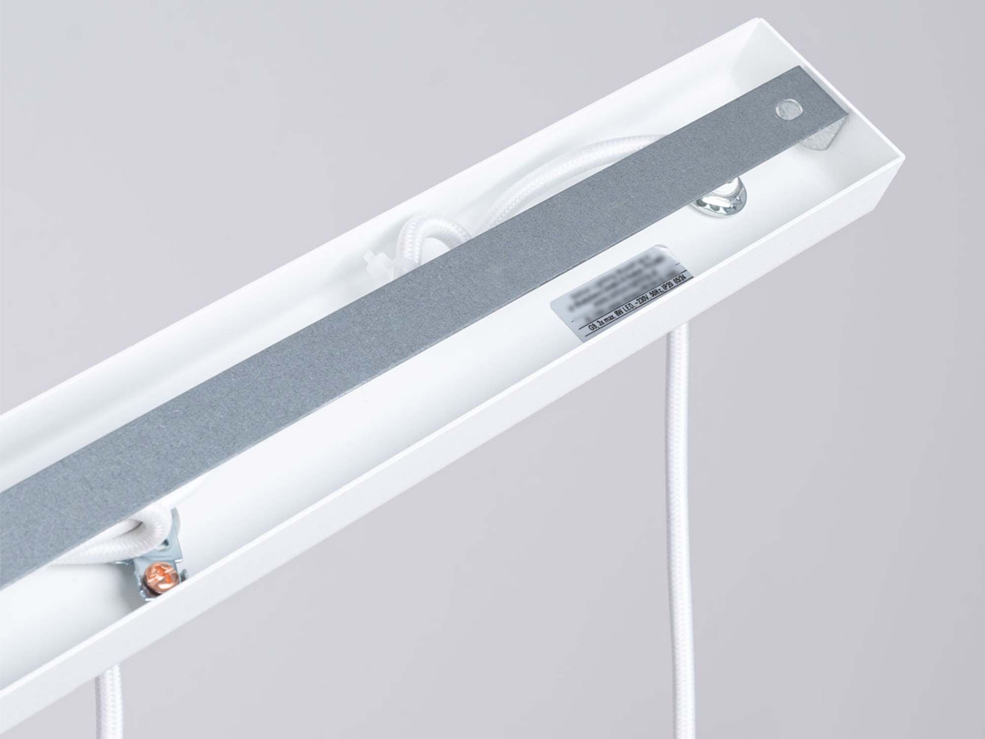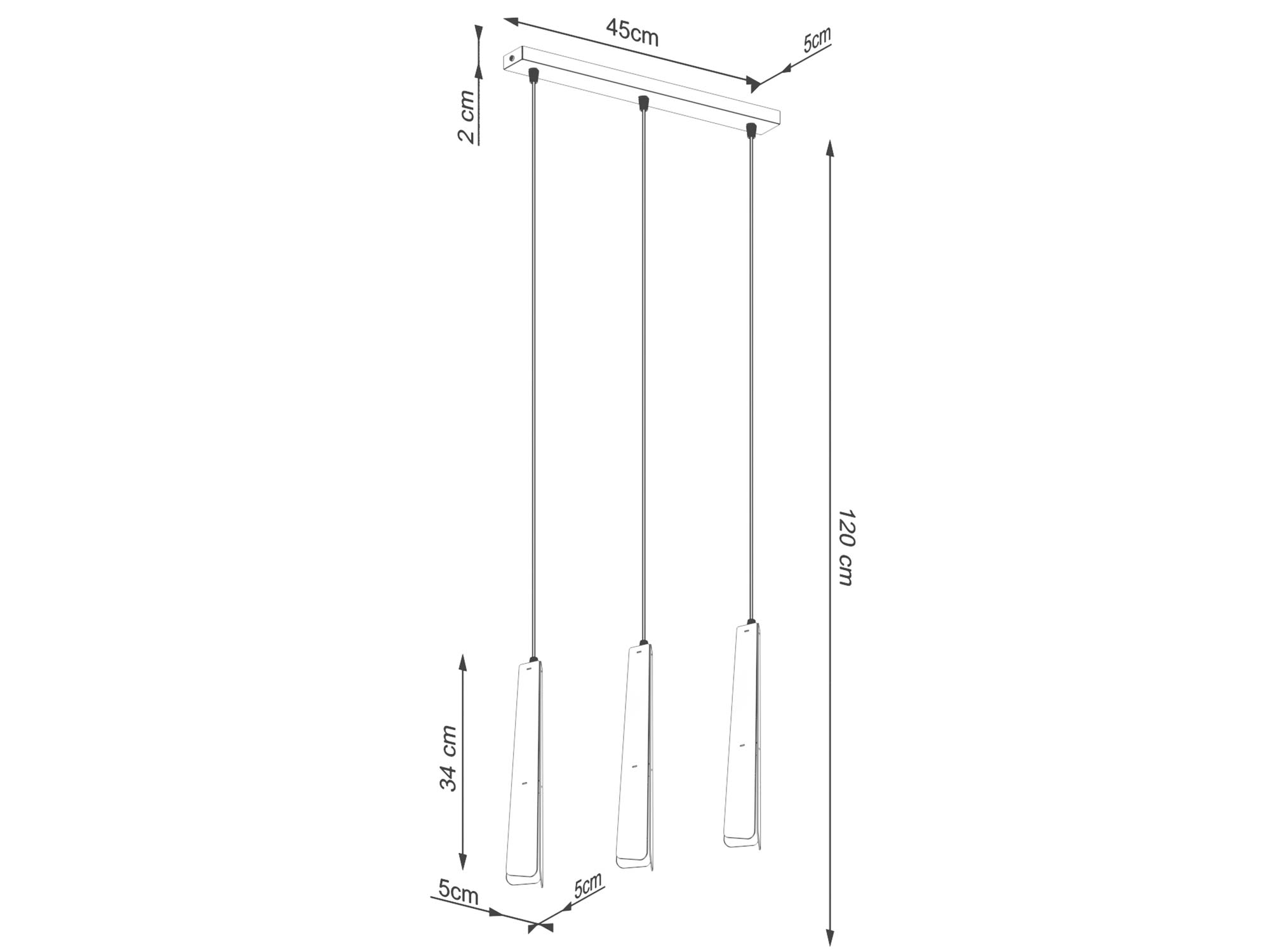 Konstrukcja lampy składa się z trzech smukłych kloszy (5/5/34 cm) zawieszonych liniowo na podsufitce o długości 45 cm. Dzięki temu światło rozprowadzane jest równomiernie, tworząc przytulną atmosferę sprzyjającą relaksowi i spotkaniom w gronie najbliższych. To doskonałe rozwiązanie zarówno nad stół w jadalni, jak i do salonu, kuchni czy gabinetu.