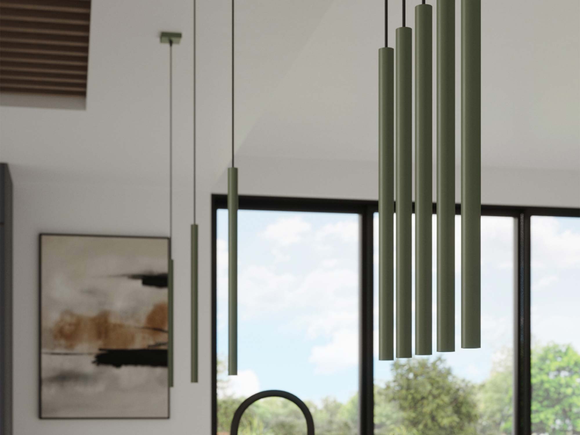 Lampa wisząca VARIO 2 zielona oliwka to doskonałe połączenie nowoczesnego minimalizmu z elegancją inspirowaną naturą. Jej smukła forma i wyjątkowy, oliwkowy odcień zieleni sprawiają, że wnosi do wnętrza świeżość, subtelność i designerski charakter. Dzięki podwójnemu źródłu światła lampa idealnie sprawdzi się zarówno w roli głównego oświetlenia, jak i elementu budującego nastrojowy klimat w salonie, jadalni, kuchni czy sypialni.