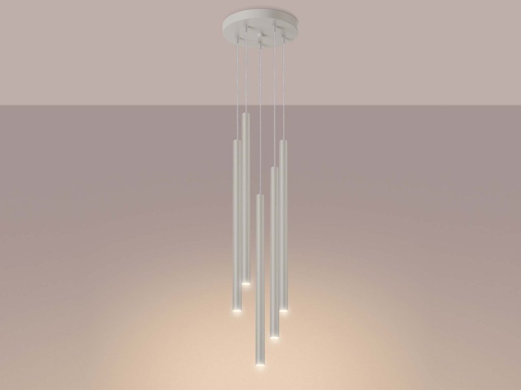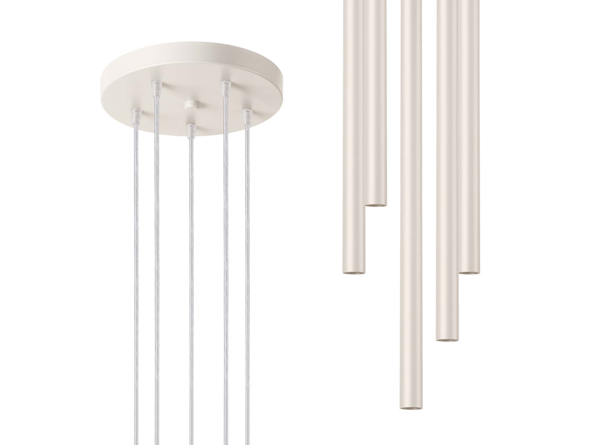 Klosze o wymiarach 2,5/50 cm charakteryzują się smukłą formą, która nadaje lampie lekkości i nowoczesnego charakteru. Beżowe wykończenie wprowadza do wnętrza elegancki akcent, który doskonale komponuje się z jasnymi aranżacjami, wnętrzami skandynawskimi czy minimalistycznymi. Podsufitka o wymiarach 25/3 cm zapewnia stabilne i estetyczne mocowanie całej konstrukcji.