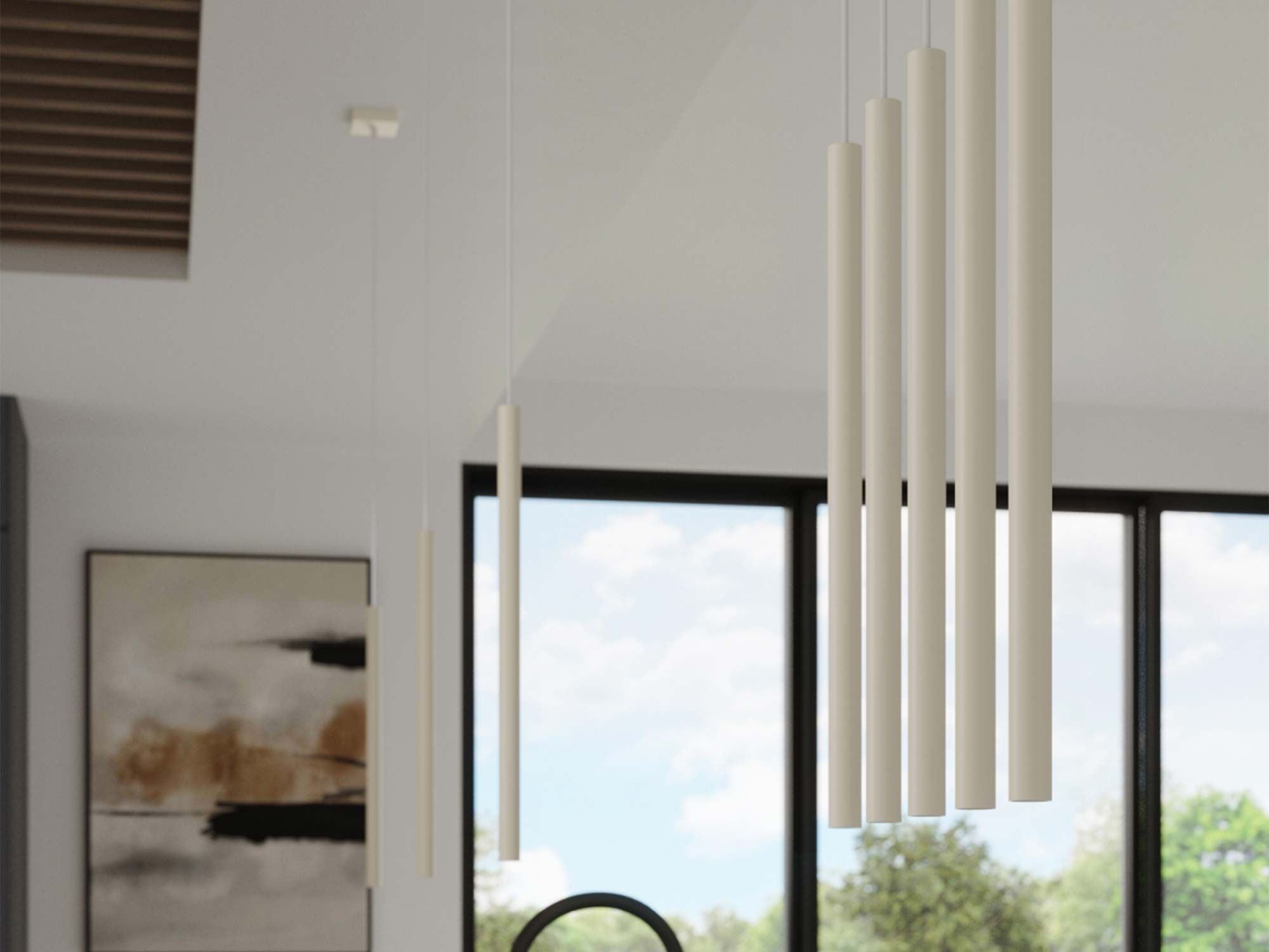 • Nowoczesny design: smukłe klosze i beżowe wykończenie pasują do wielu aranżacji.