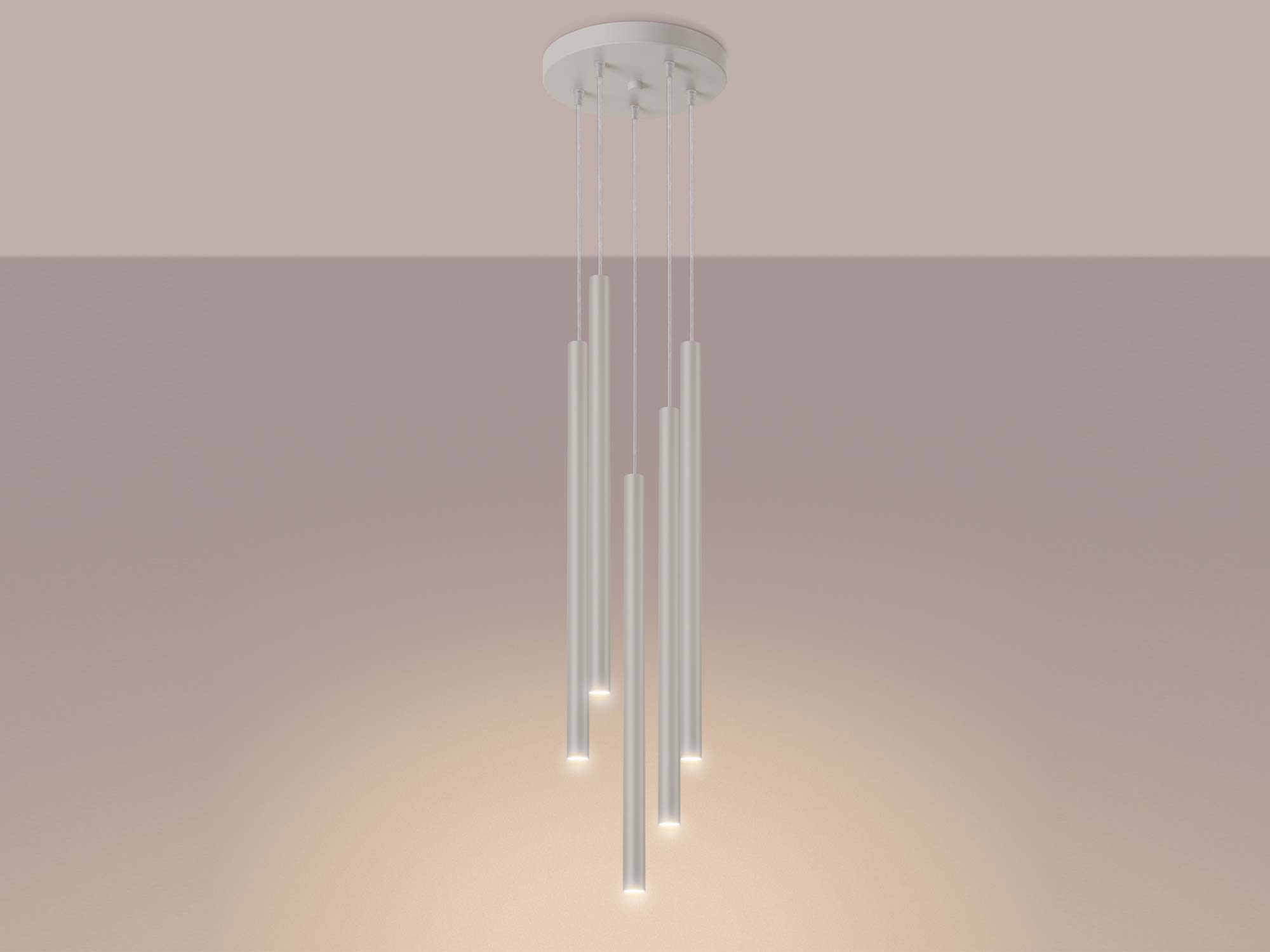 Lampa VARIO 5P beżowa to propozycja, która łączy nowoczesną formę z klasycznym wykończeniem. Wykonana z trwałej stali, jest gwarancją długowieczności i solidności. Jej pięć źródeł światła opartych na popularnym gwincie G9 sprawia, że bez problemu dopasujesz odpowiednie żarówki LED, by stworzyć atmosferę odpowiadającą Twoim potrzebom – od ciepłej i przytulnej, po neutralną i sprzyjającą pracy.