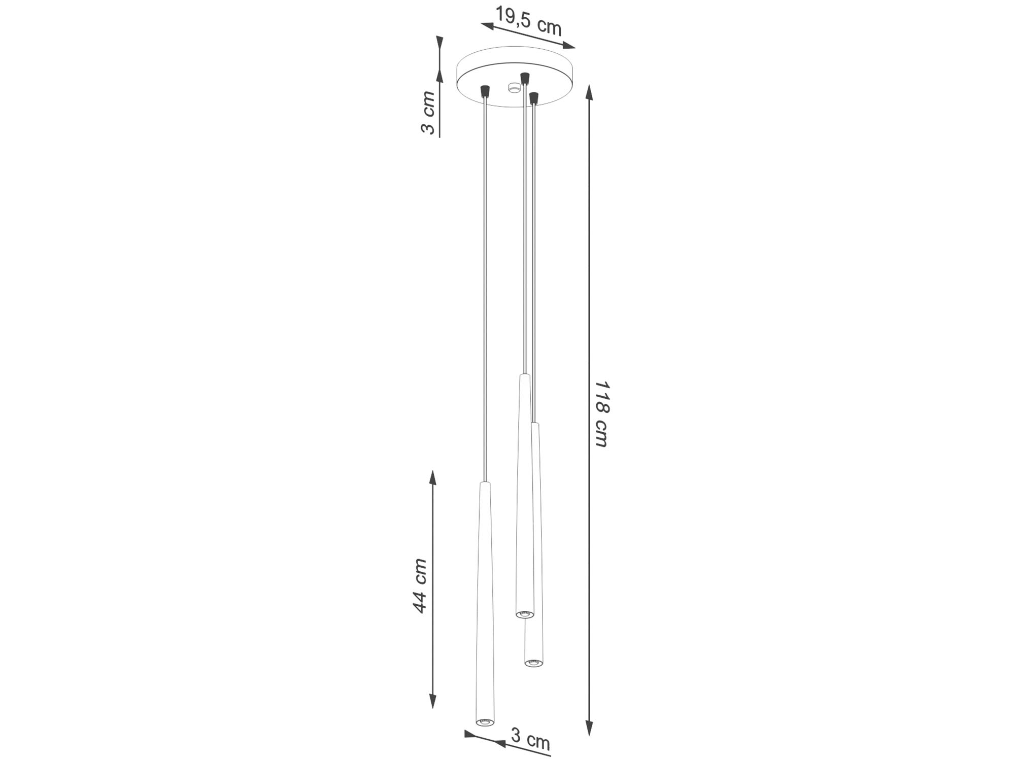 Klosze o smukłej formie (44/3 cm) subtelnie kierują światło w dół, dzięki czemu lampa idealnie sprawdzi się nad stołem w jadalni, wyspą kuchenną, a także w salonie jako centralne oświetlenie. Jej wysokość (118 cm) pozwala na dopasowanie do różnorodnych wnętrz – od wysokich loftów po standardowe mieszkania.