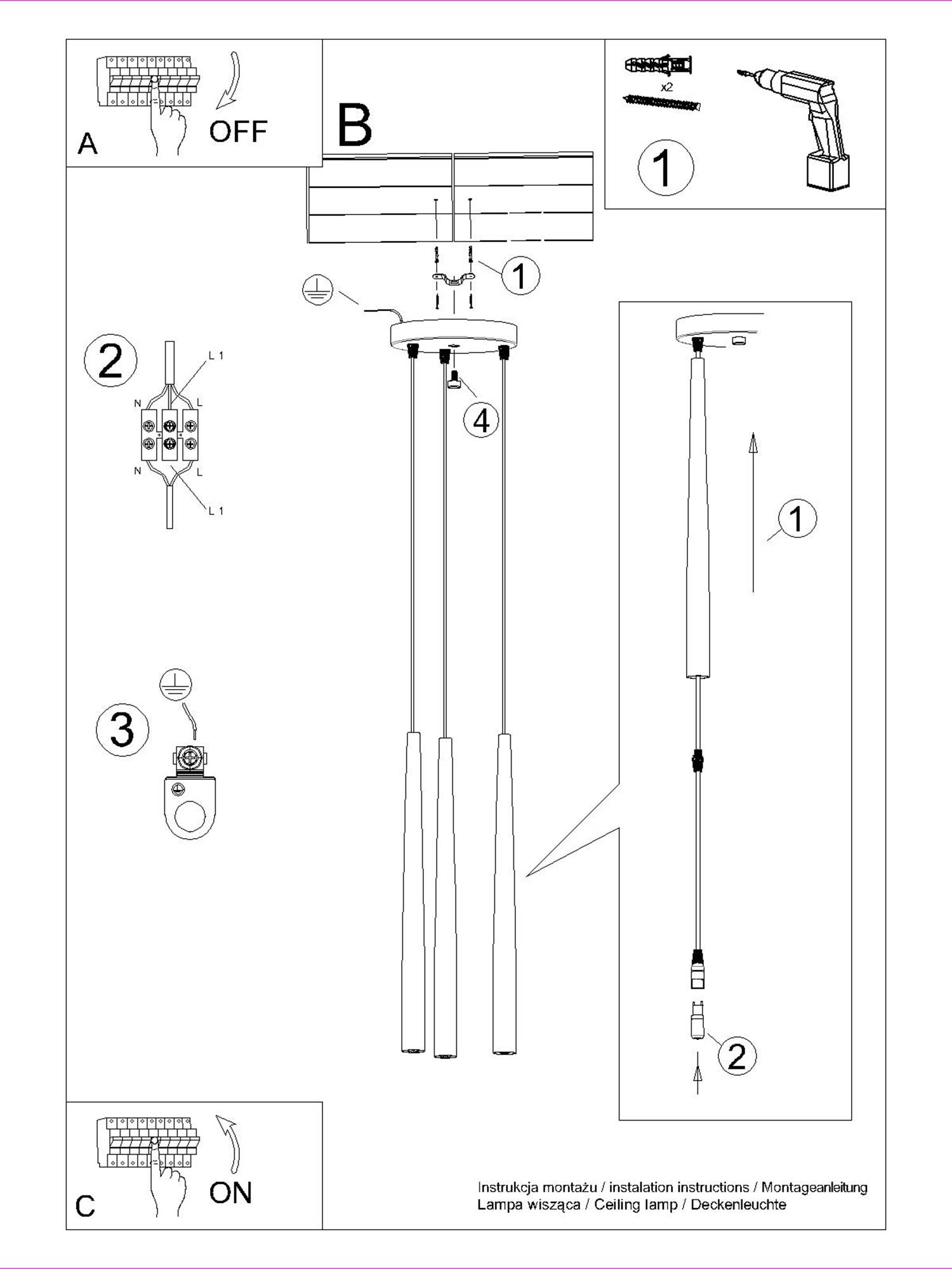 • Wysoka funkcjonalność – trzy źródła światła zapewniają odpowiednią ilość oświetlenia nawet w większych pomieszczeniach.