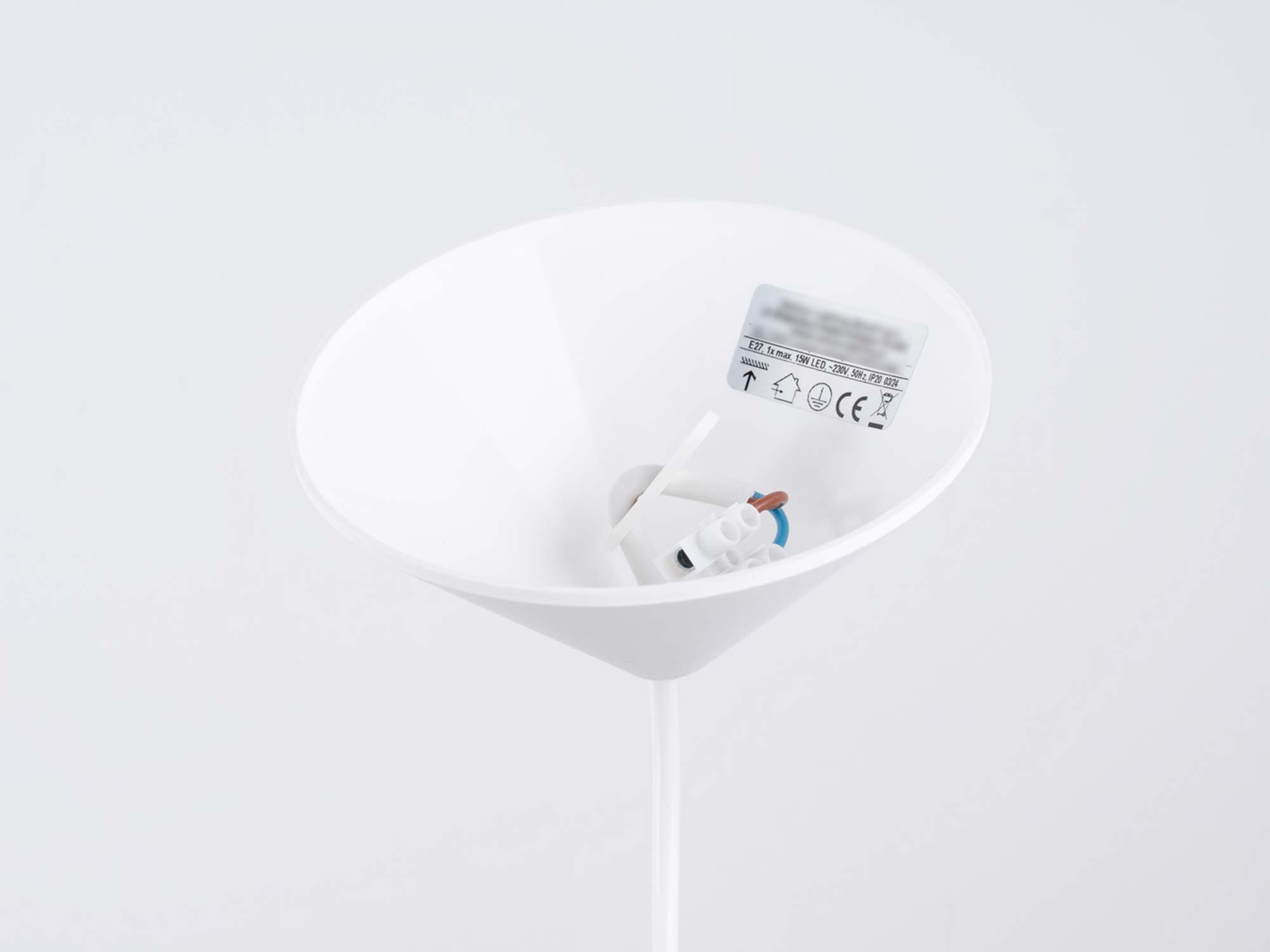 Materiał, z którego wykonano lampę – stal – zapewnia jej trwałość i odporność na codzienne użytkowanie. Dzięki matowemu wykończeniu biel wygląda elegancko i niebanalnie. Lampa pasuje do wnętrz urządzonych w stylu skandynawskim, nowoczesnym, minimalistycznym czy glamour. To produkt, który można z łatwością dopasować zarówno do dużych przestrzeni, jak i mniejszych pomieszczeń.