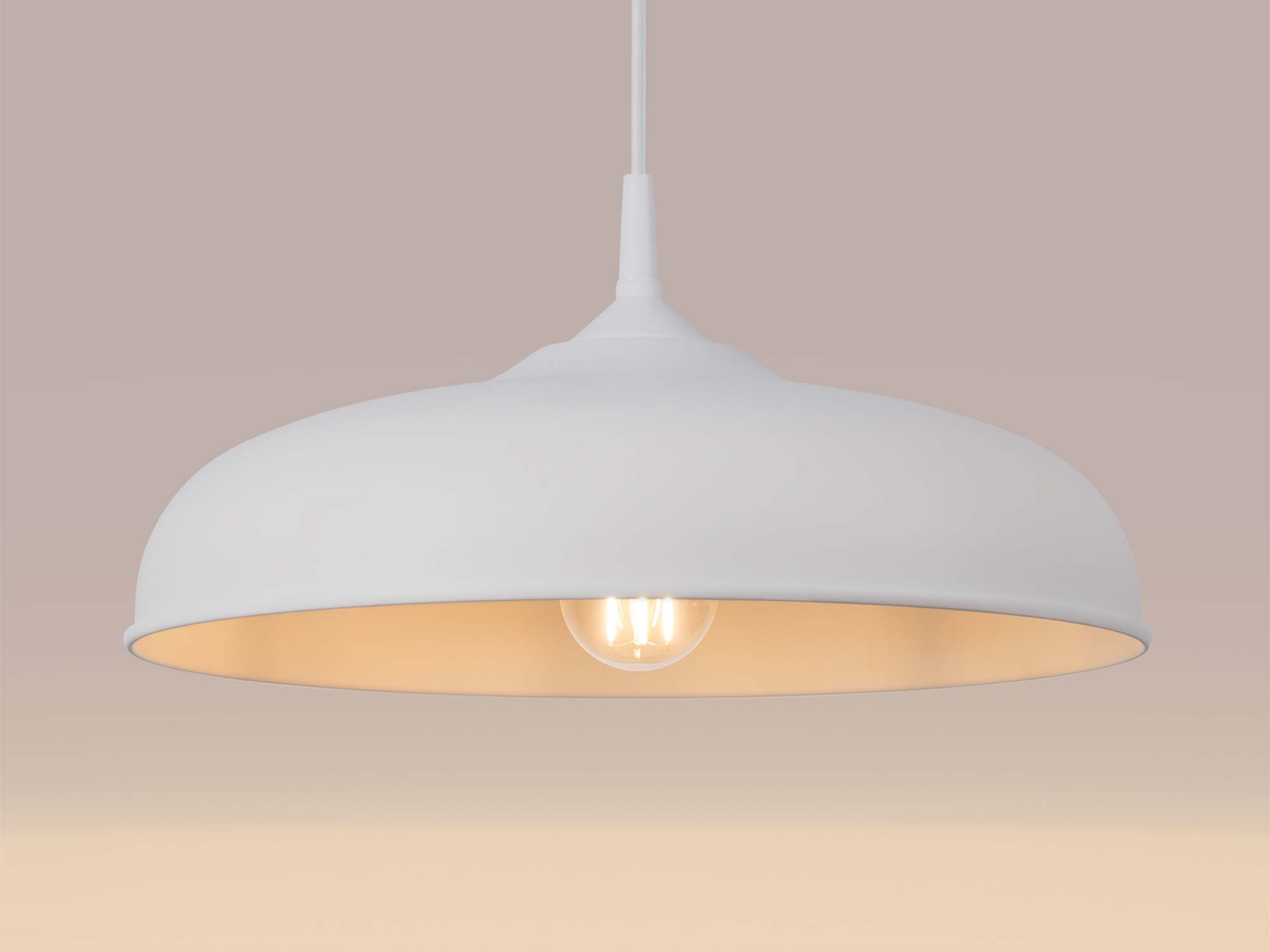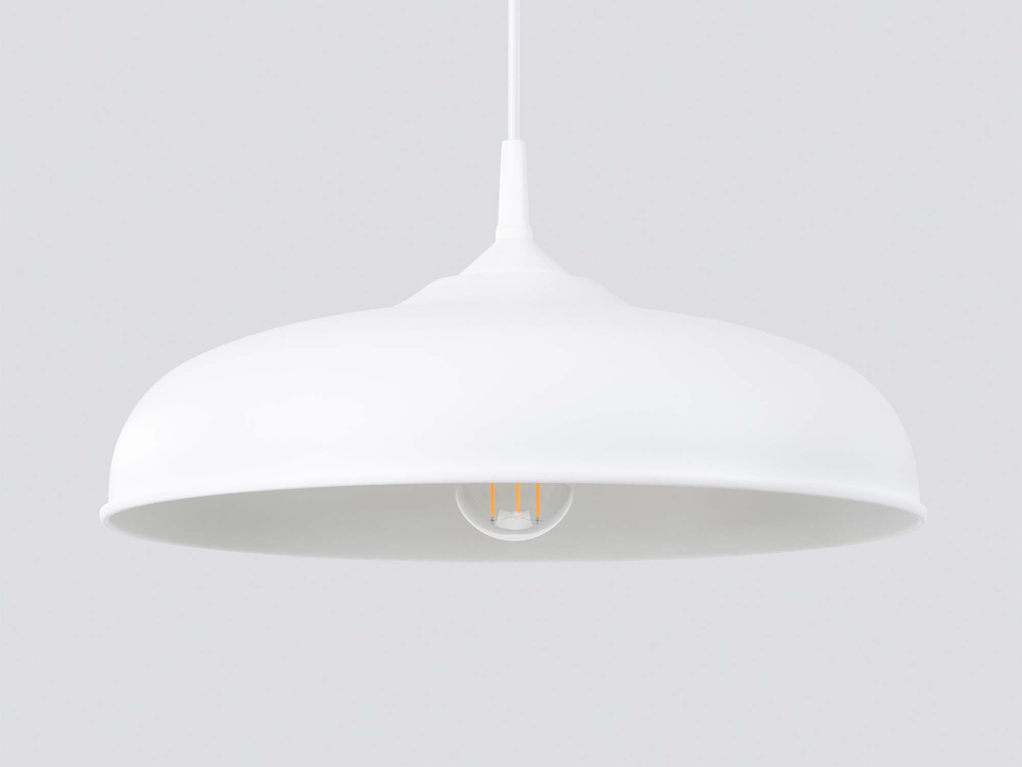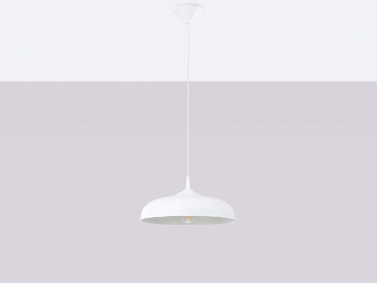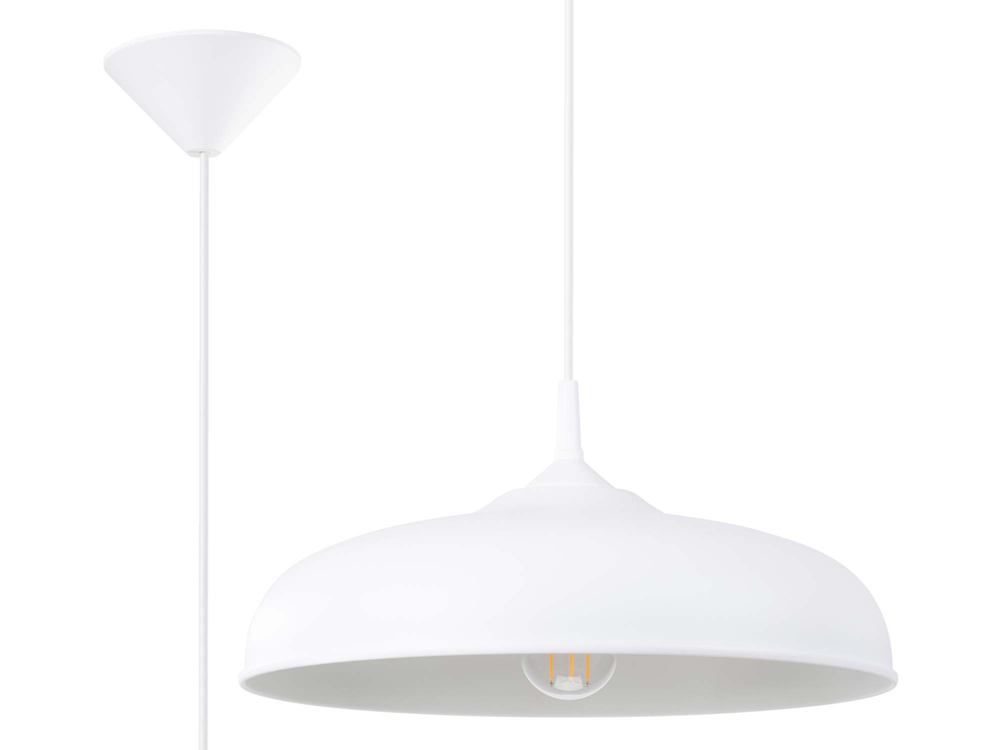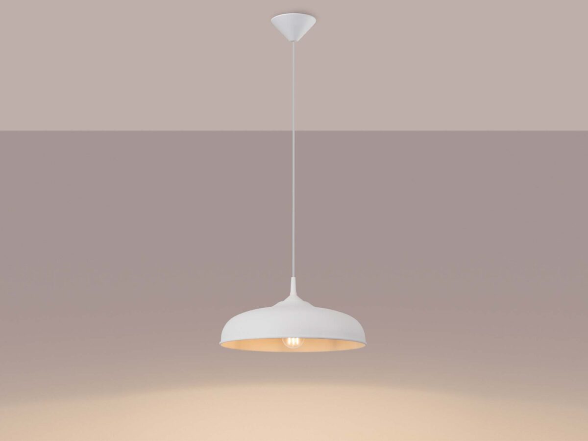 GIREA biała została wykonana z wytrzymałej stali, co gwarantuje jej odporność na codzienne użytkowanie i długowieczność. Jej szeroki klosz o średnicy 38 cm zapewnia równomierne rozpraszanie światła, co czyni ją praktycznym rozwiązaniem zarówno do większych, jak i mniejszych przestrzeni.