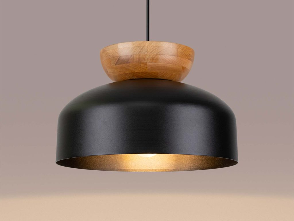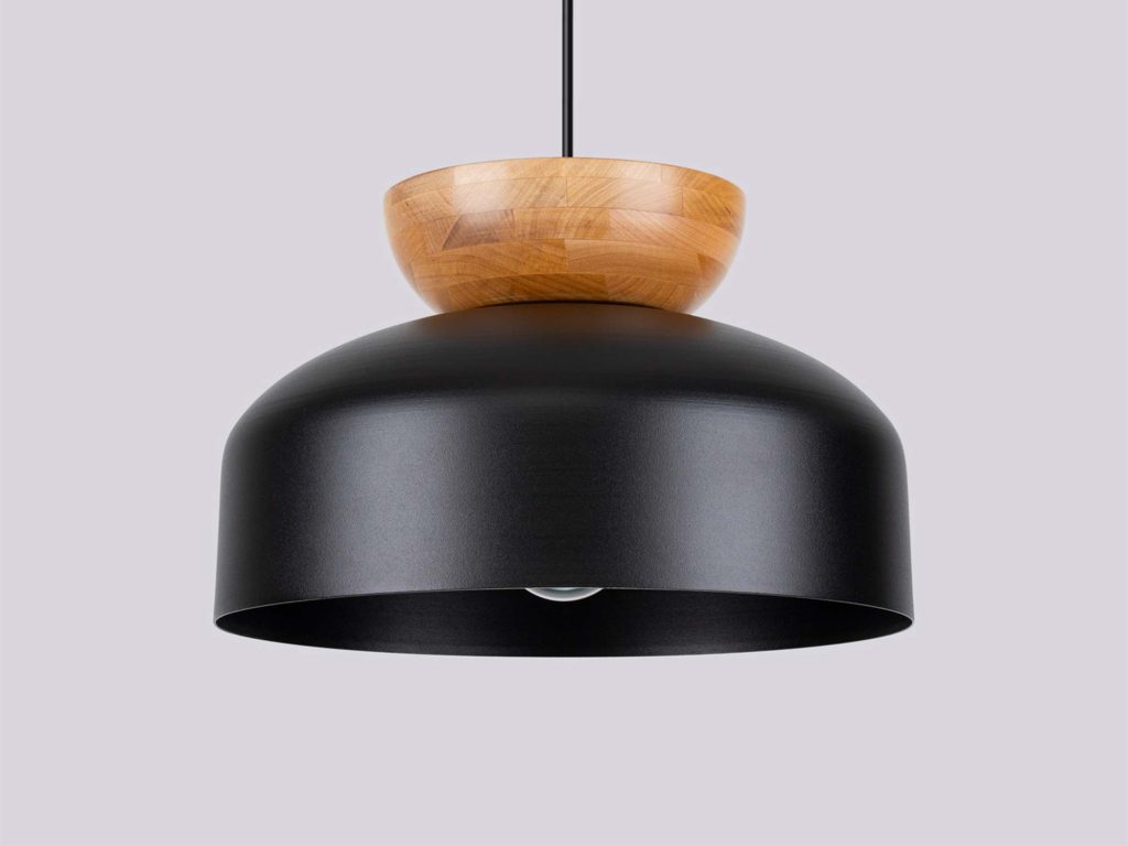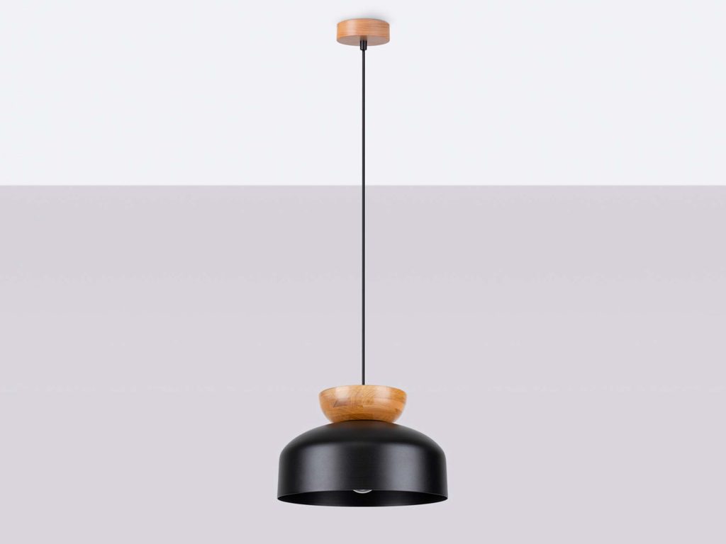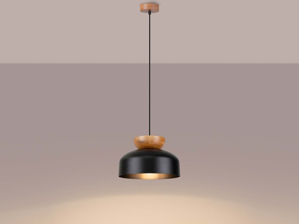 Lampa wisząca MARLA – elegancja w czerni i drewnie