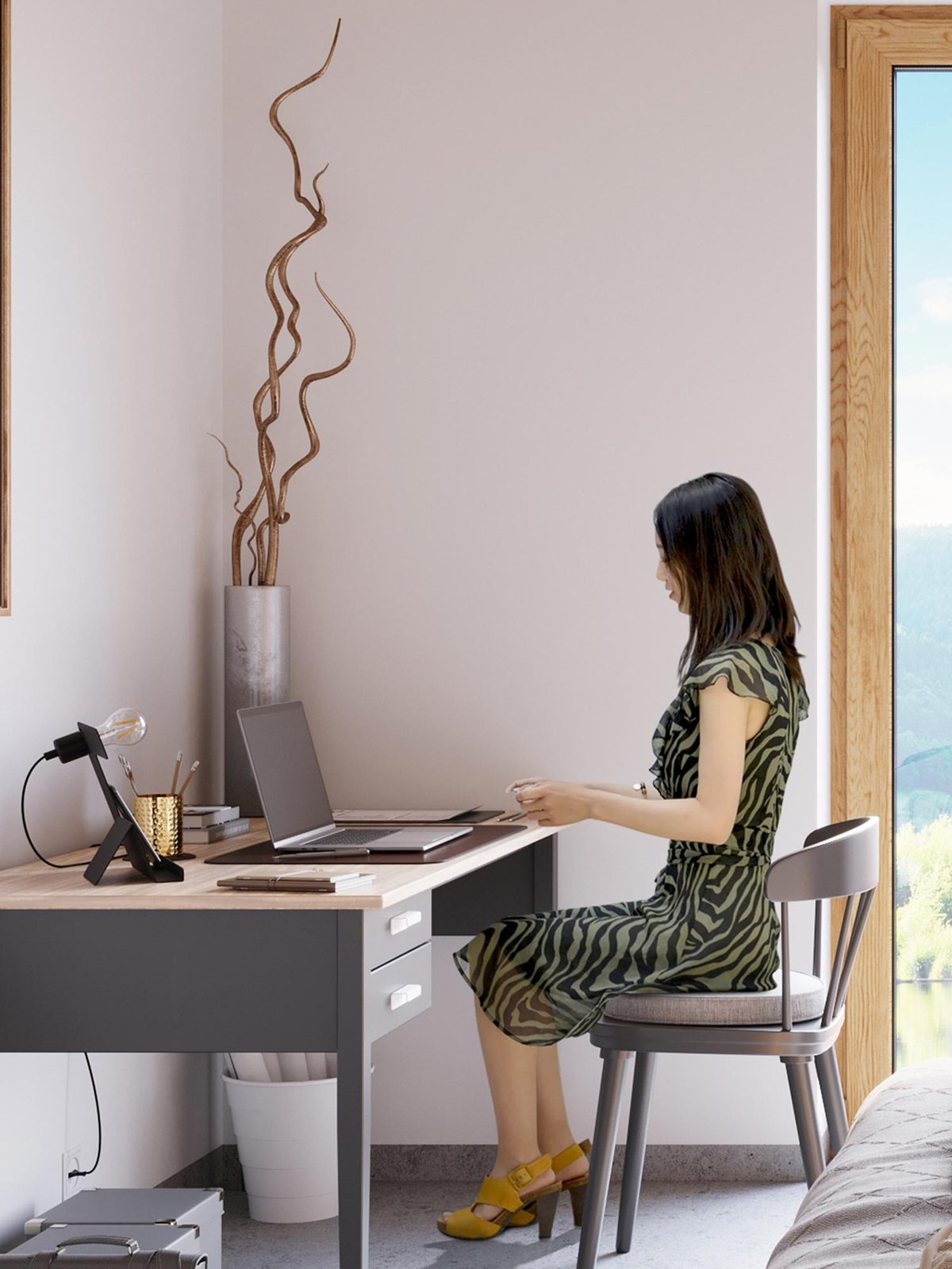 Lampa Biurkowa IONE to produkt, który nie tylko spełnia swoją podstawową funkcję – oświetlenie przestrzeni roboczej, ale również staje się wyrazistym elementem dekoracyjnym wnętrza.