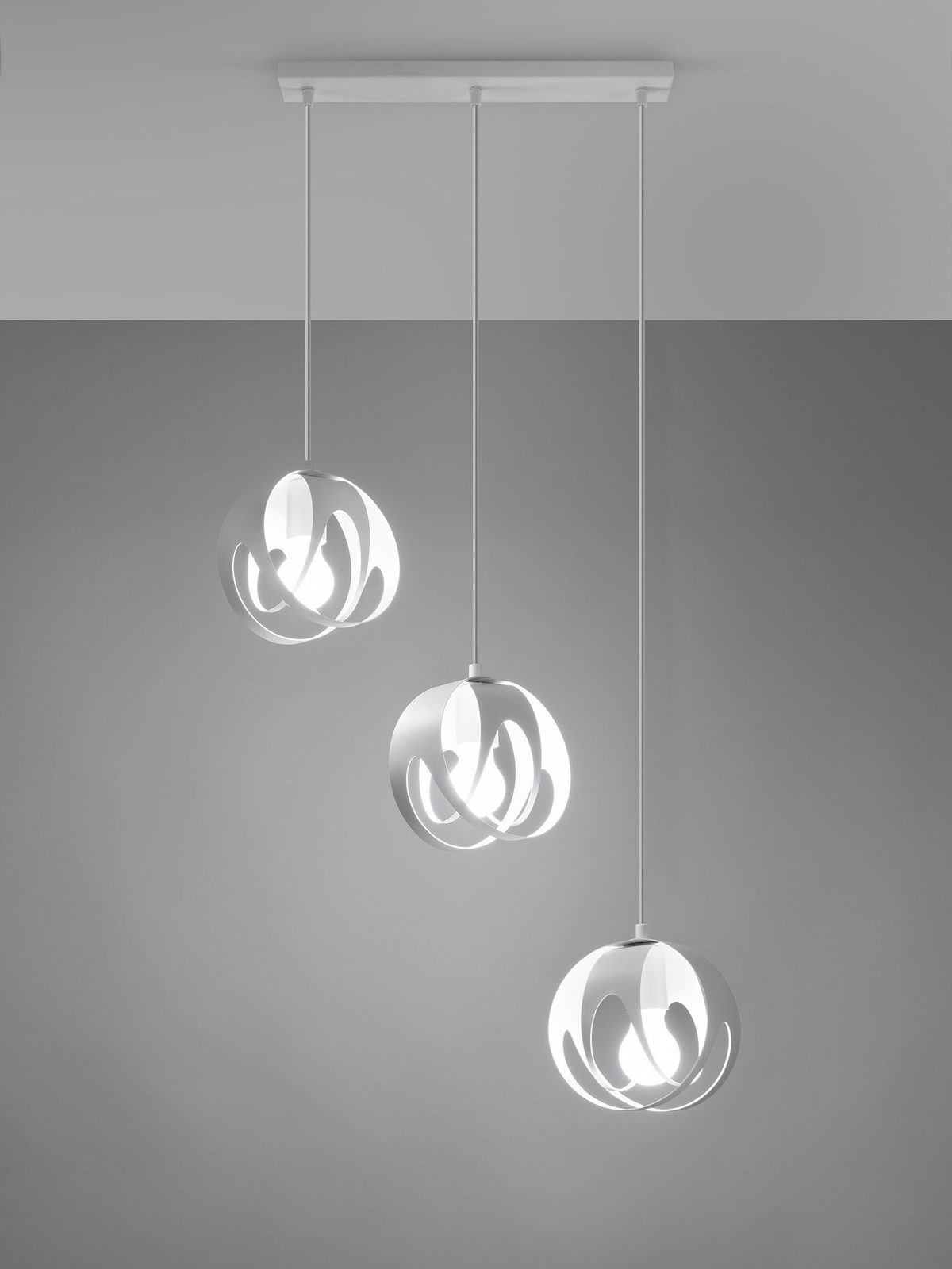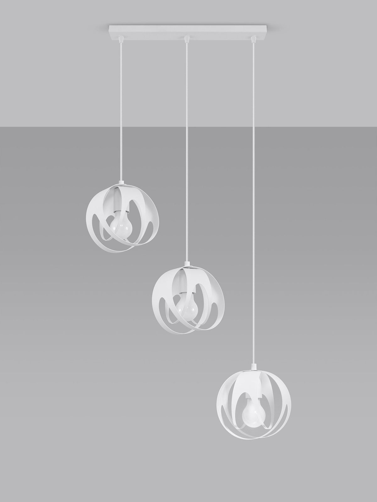 Trzy punktowa lampa sufitowa z białymi kulami LED