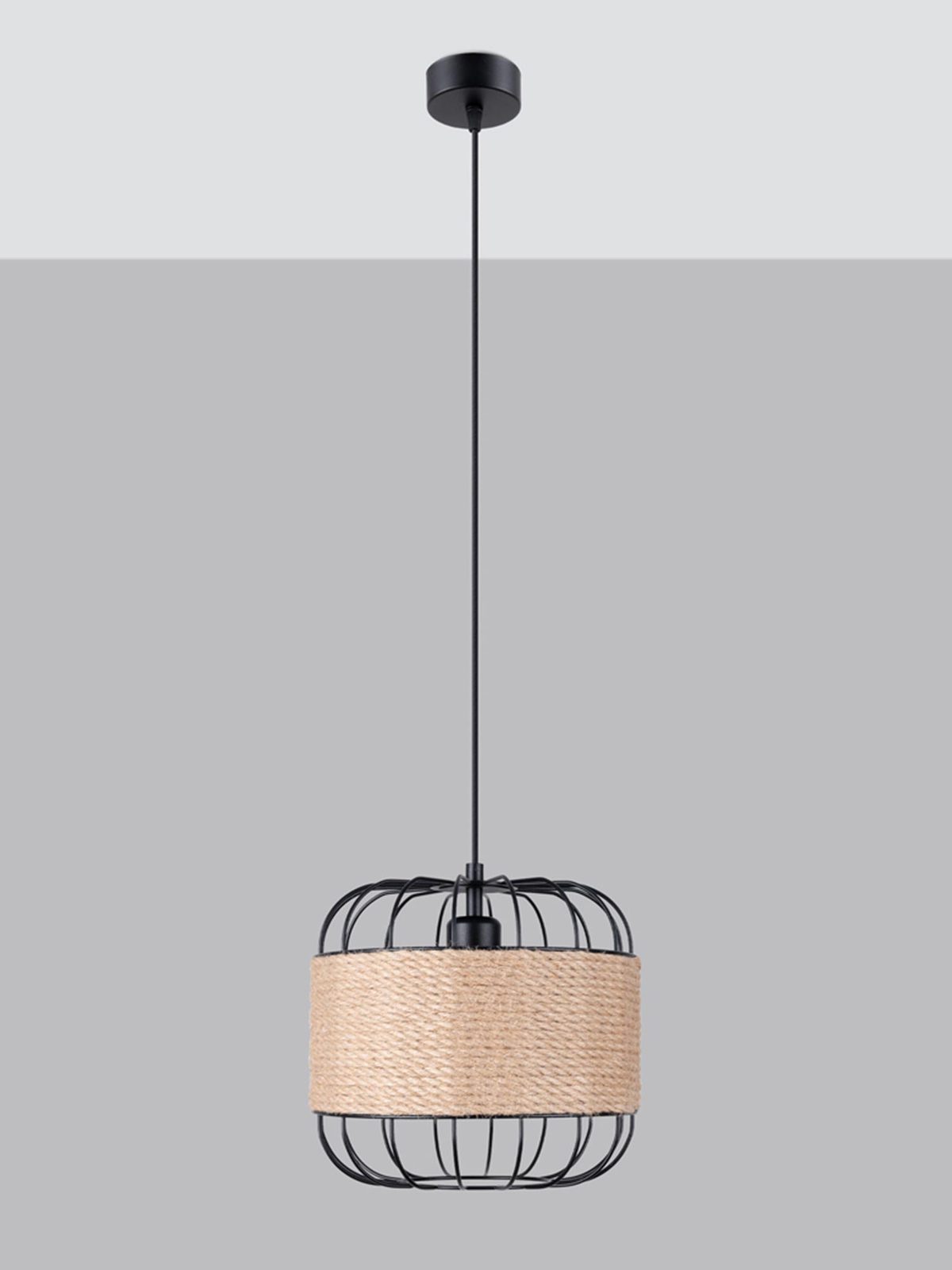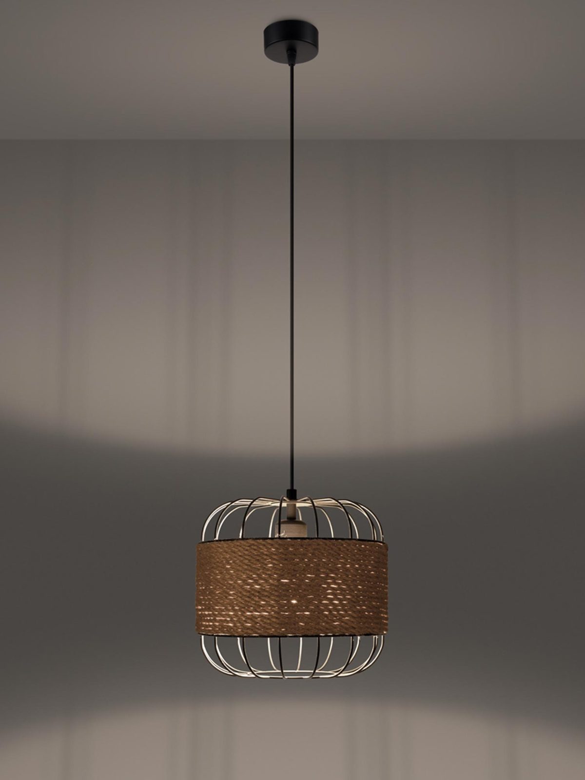 Stylowa lampa wisząca z jutą i metalem, styl boho