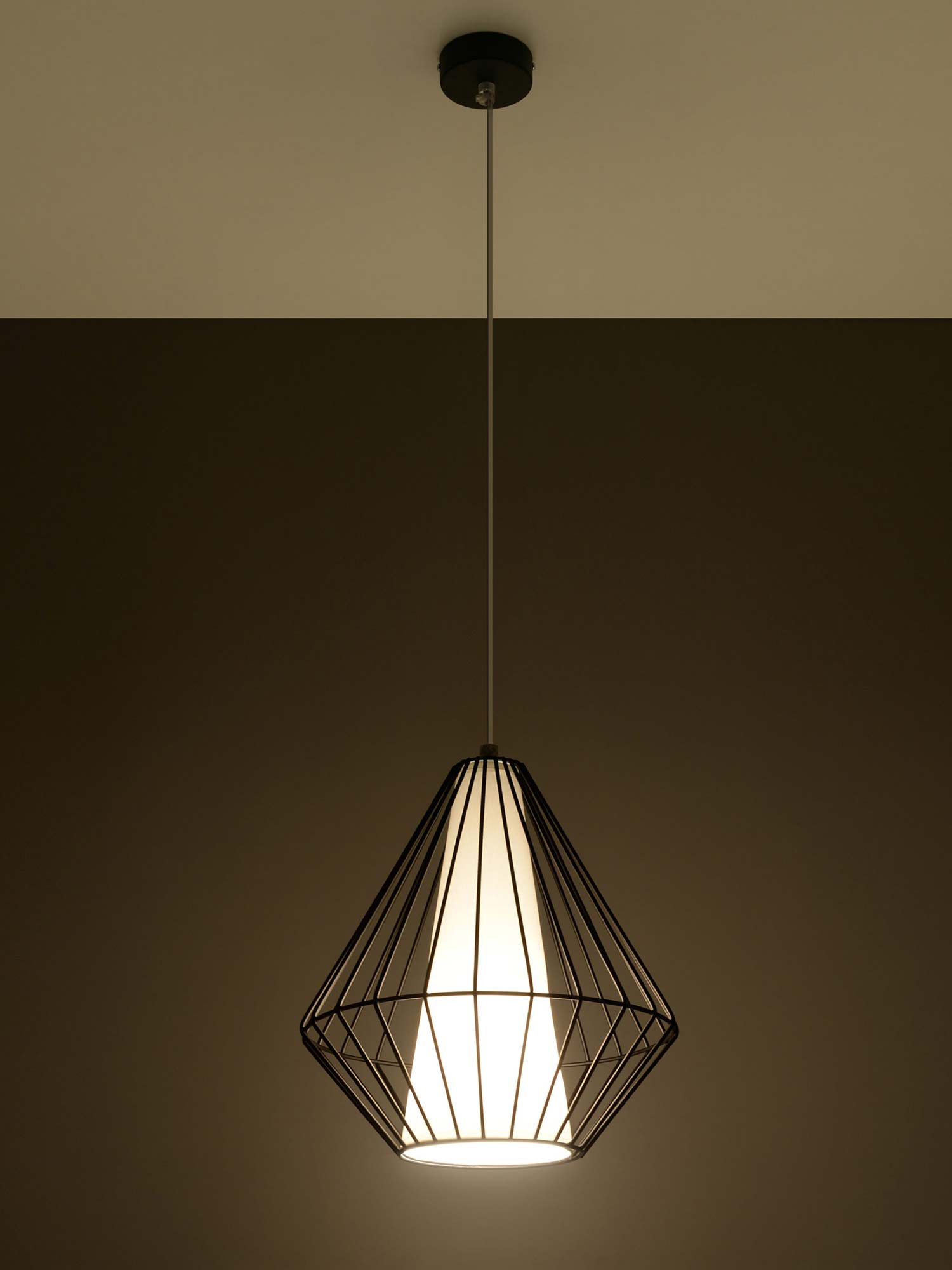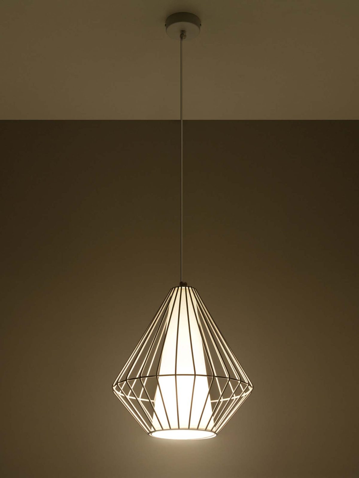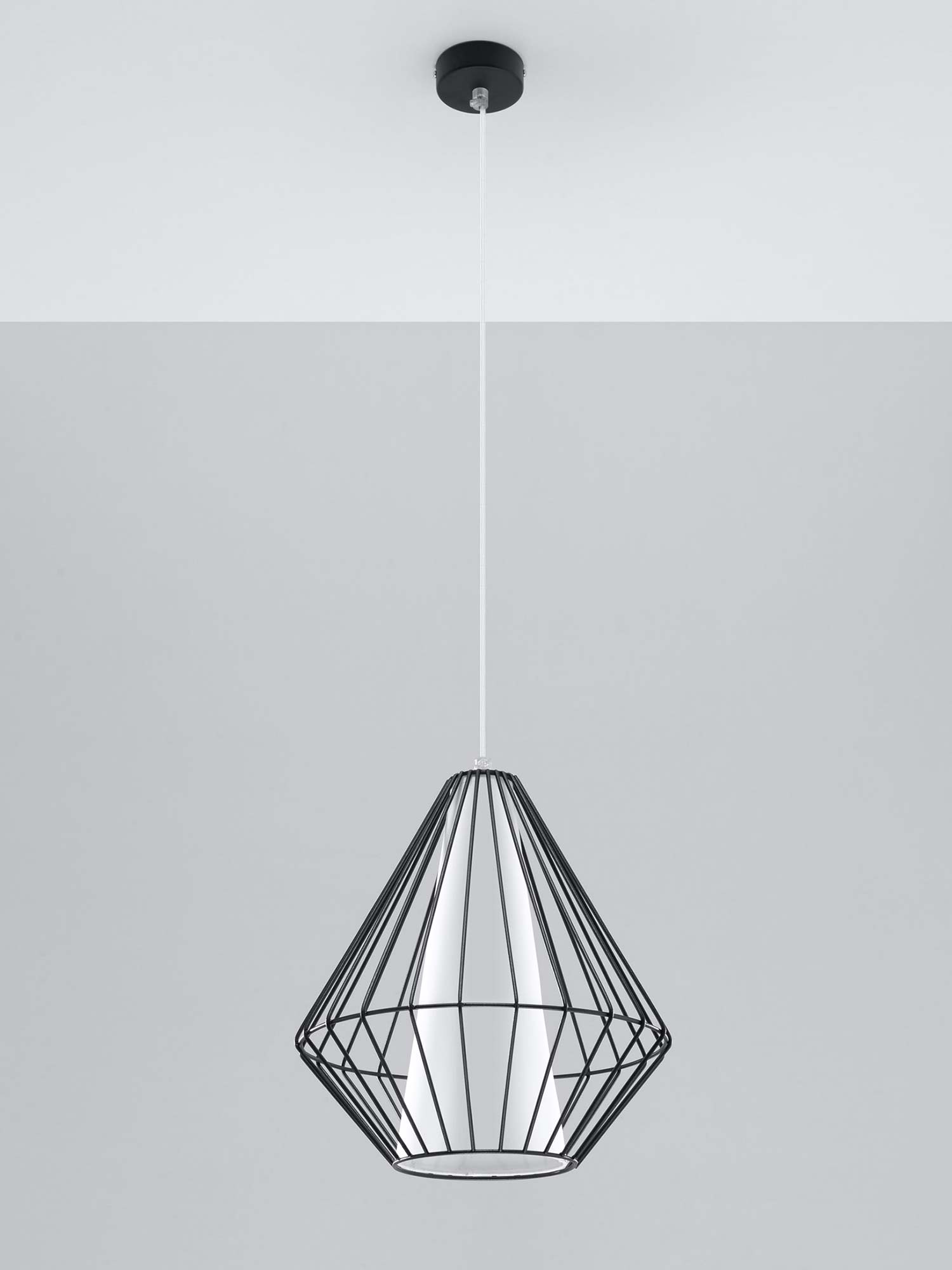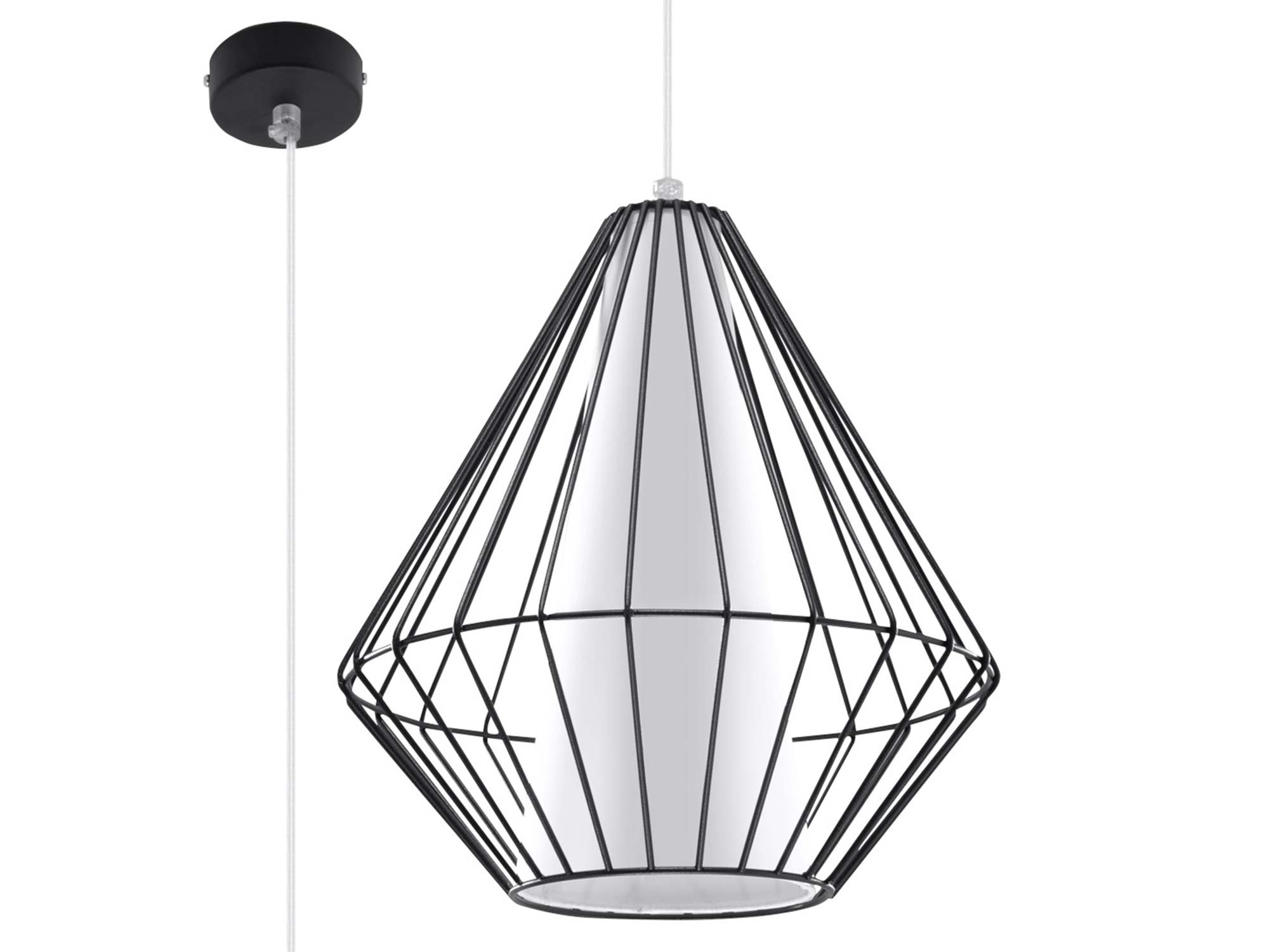 Lampa JASMIN posiada stożkową oprawę otoczoną ozdobną, stalową klatką w formie fasetowanego diamentu. Ta unikalna konstrukcja czyni ją idealnym dodatkiem do wnętrz nowoczesnych, minimalistycznych i loftowych. Niezależnie od tego, czy szukasz oświetlenia do swojego salonu, sypialni czy jadalni, lampa wisząca JASMIN zapewni eleganckie i stylowe oświetlenie.