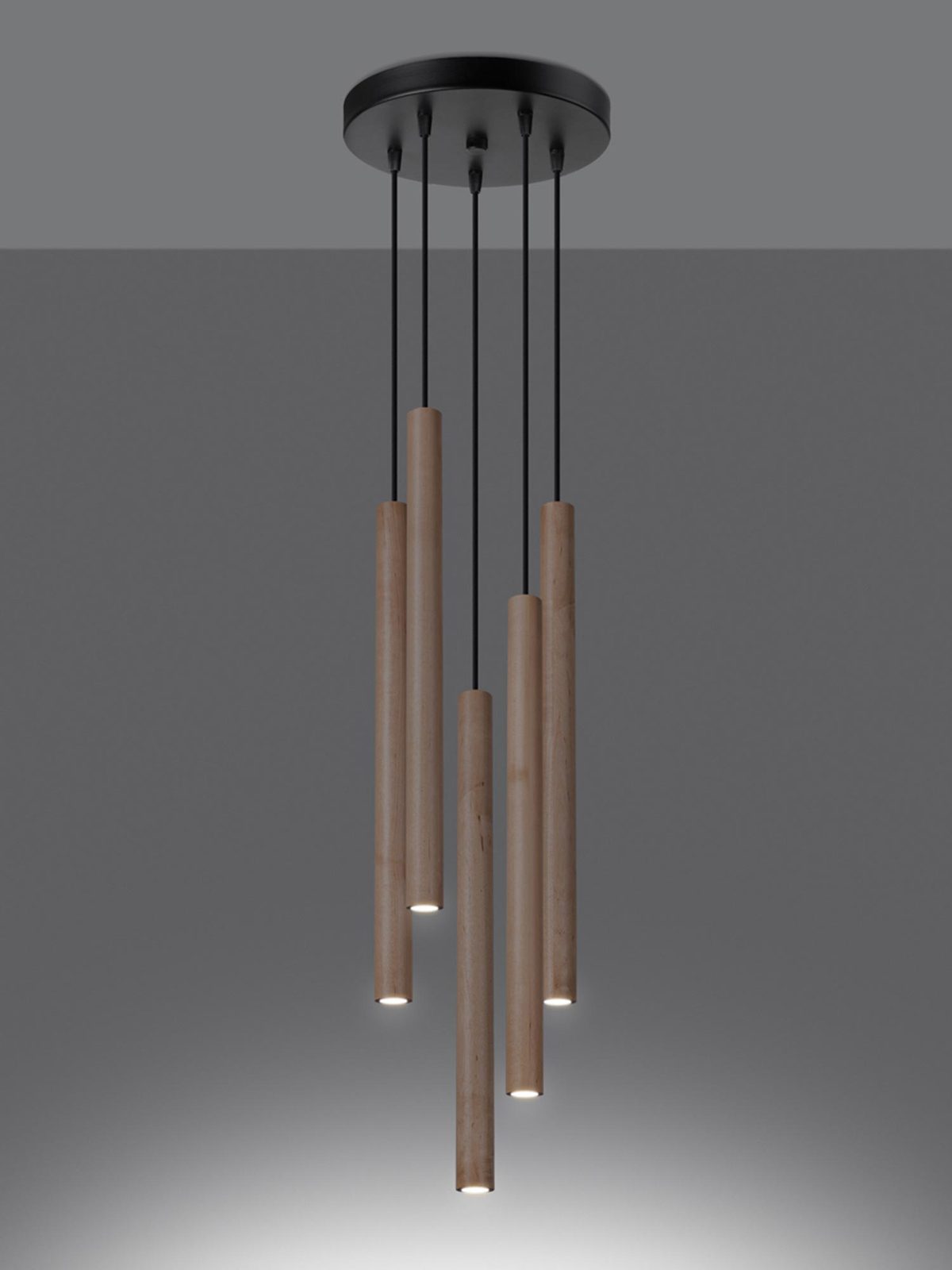 Lampa Wisząca ARBOR 5P Drewno – 5x8W LED Nowoczesna