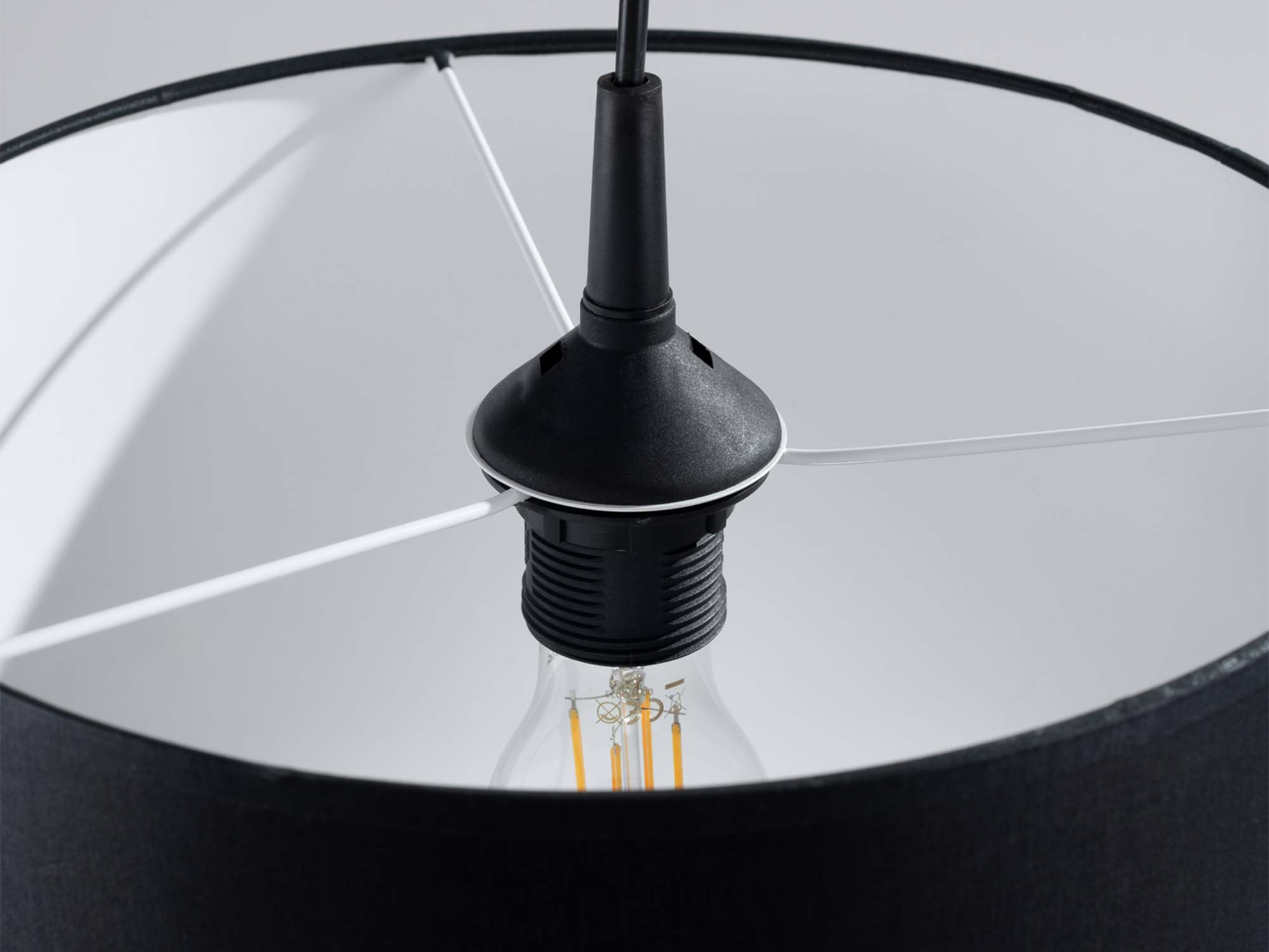 Lampa NOVARA 30 czarna nie posiada żarówki w komplecie, co daje użytkownikowi pełną swobodę personalizacji. Obsługuje żarówki LED do 15W, dzięki czemu jest energooszczędna i przyjazna środowisku. Jej klasa ochronności II oraz stopień szczelności IP20 sprawiają, że jest w pełni bezpieczna w użytkowaniu wewnątrz pomieszczeń.
