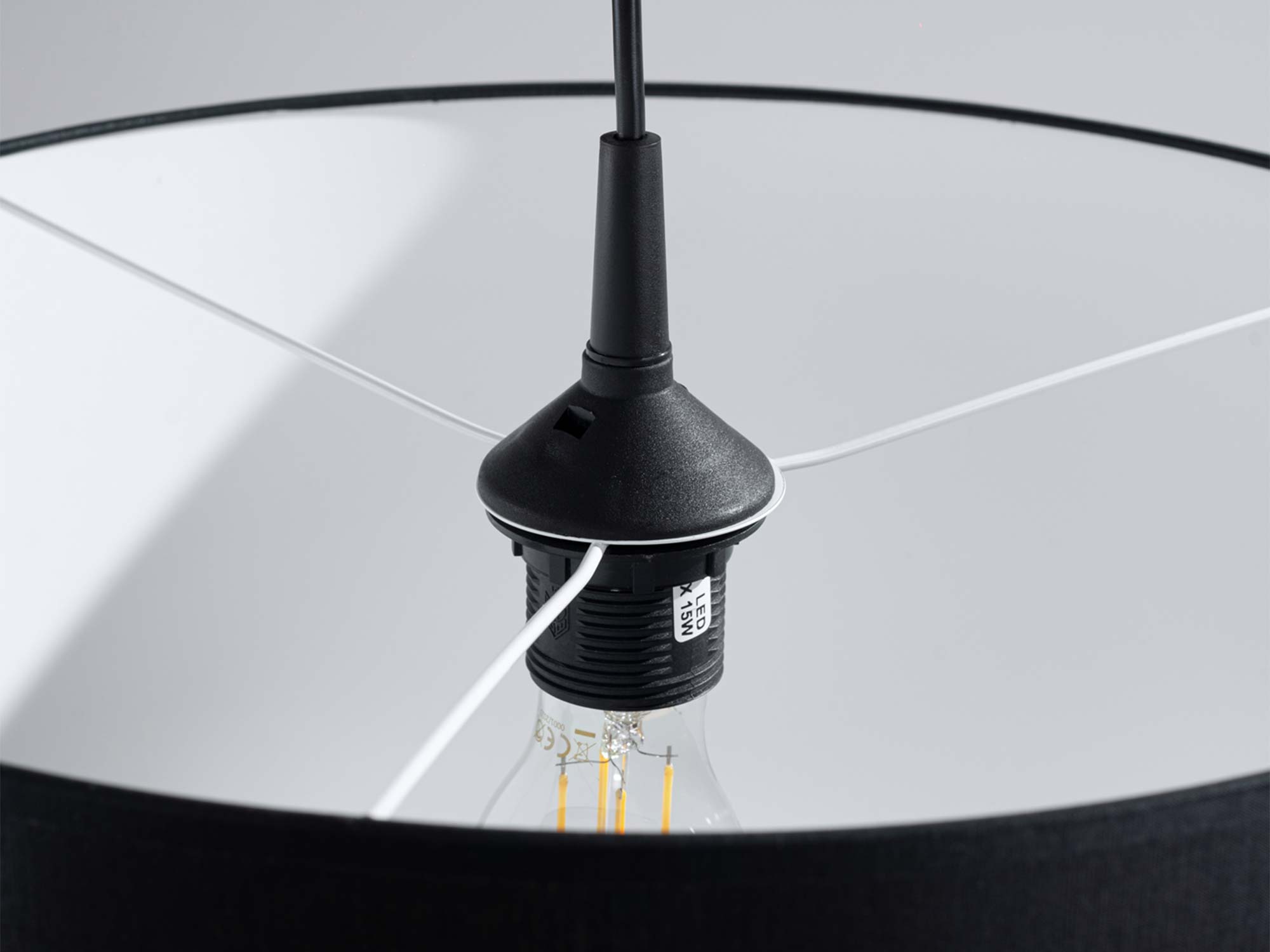 Lampa NOVARA 40 czarna została zaprojektowana dla osób, które szukają harmonii pomiędzy funkcjonalnością a estetyką. Jej klosz o średnicy 40 cm i wysokości 24 cm wykonano z połączenia tkaniny i PCV. To zestawienie materiałów sprawia, że światło rozprasza się delikatnie, wprowadzając do wnętrza przytulną atmosferę, a jednocześnie zachowując odpowiednią intensywność oświetlenia.