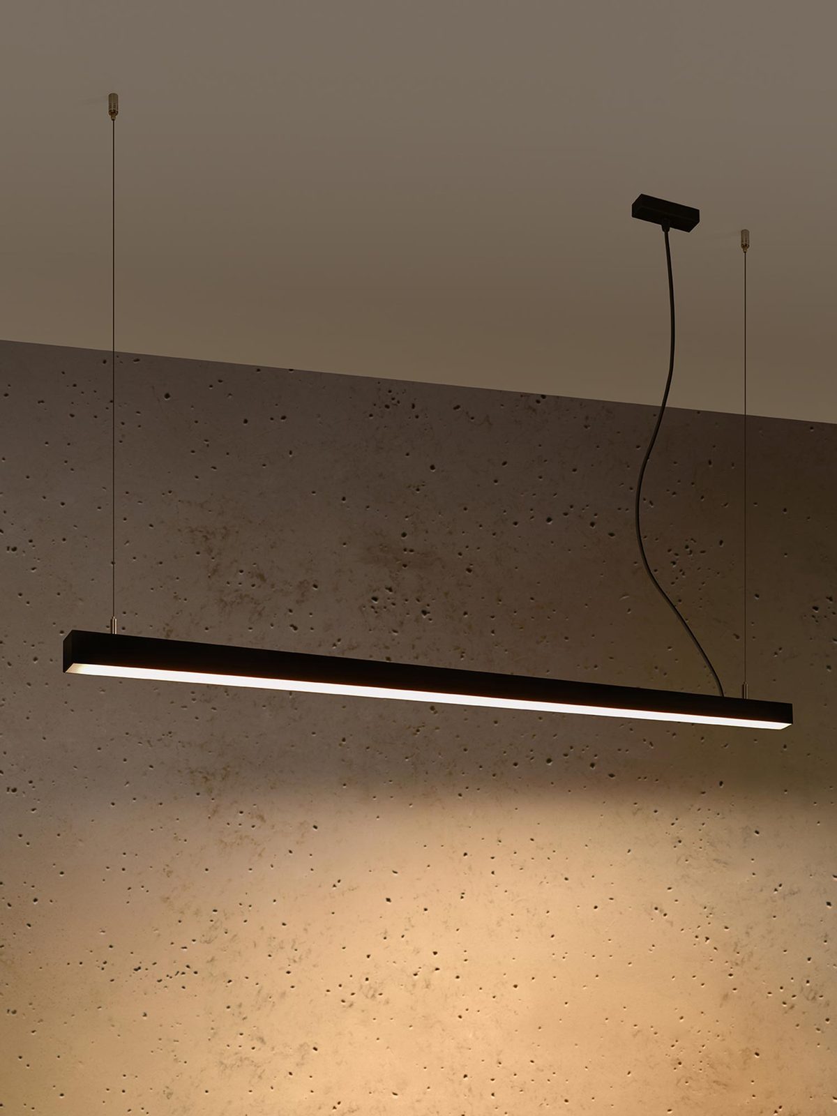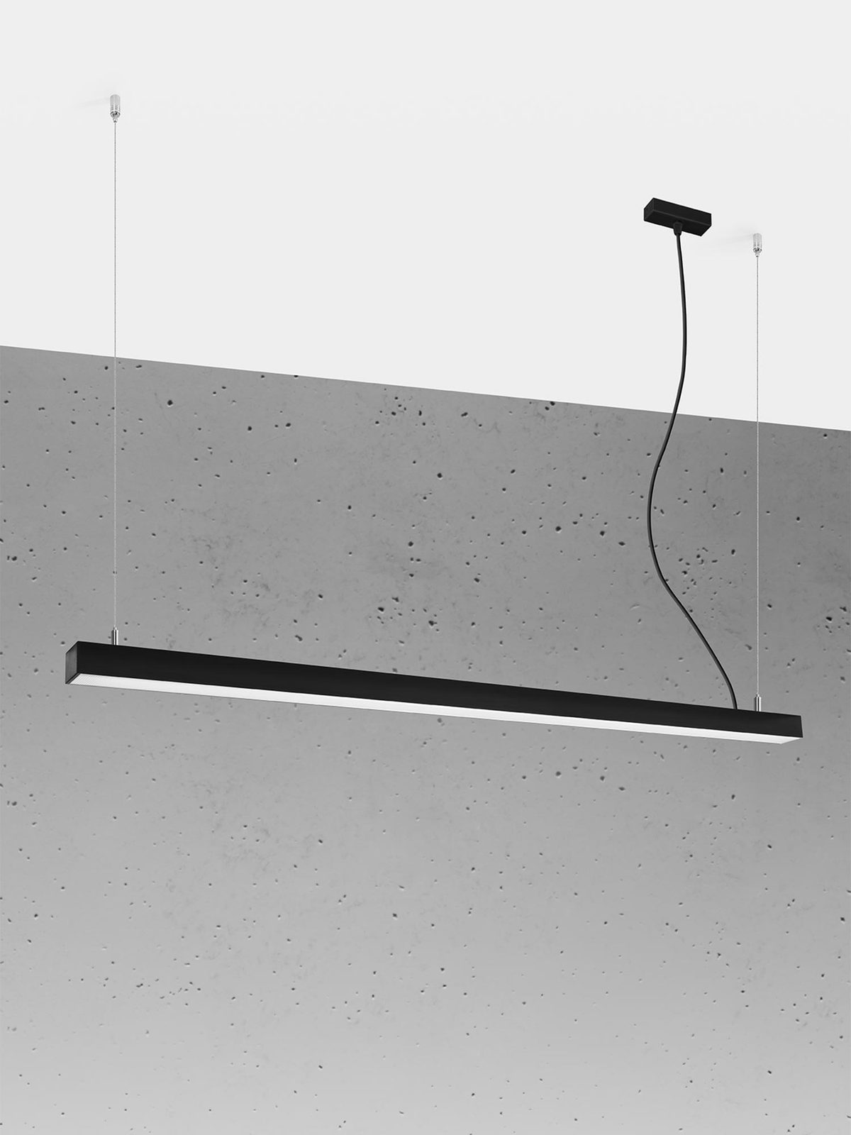 Lampa Wisząca Minimalistyczna PINNE 150 to znakomity przykład połączenia minimalistycznego designu z najnowszymi technologiami oświetleniowymi. Doskonale sprawdzi się zarówno w przestrzeniach publicznych, takich jak biura, galerie czy centra fitness, jak i w domowym zaciszu.