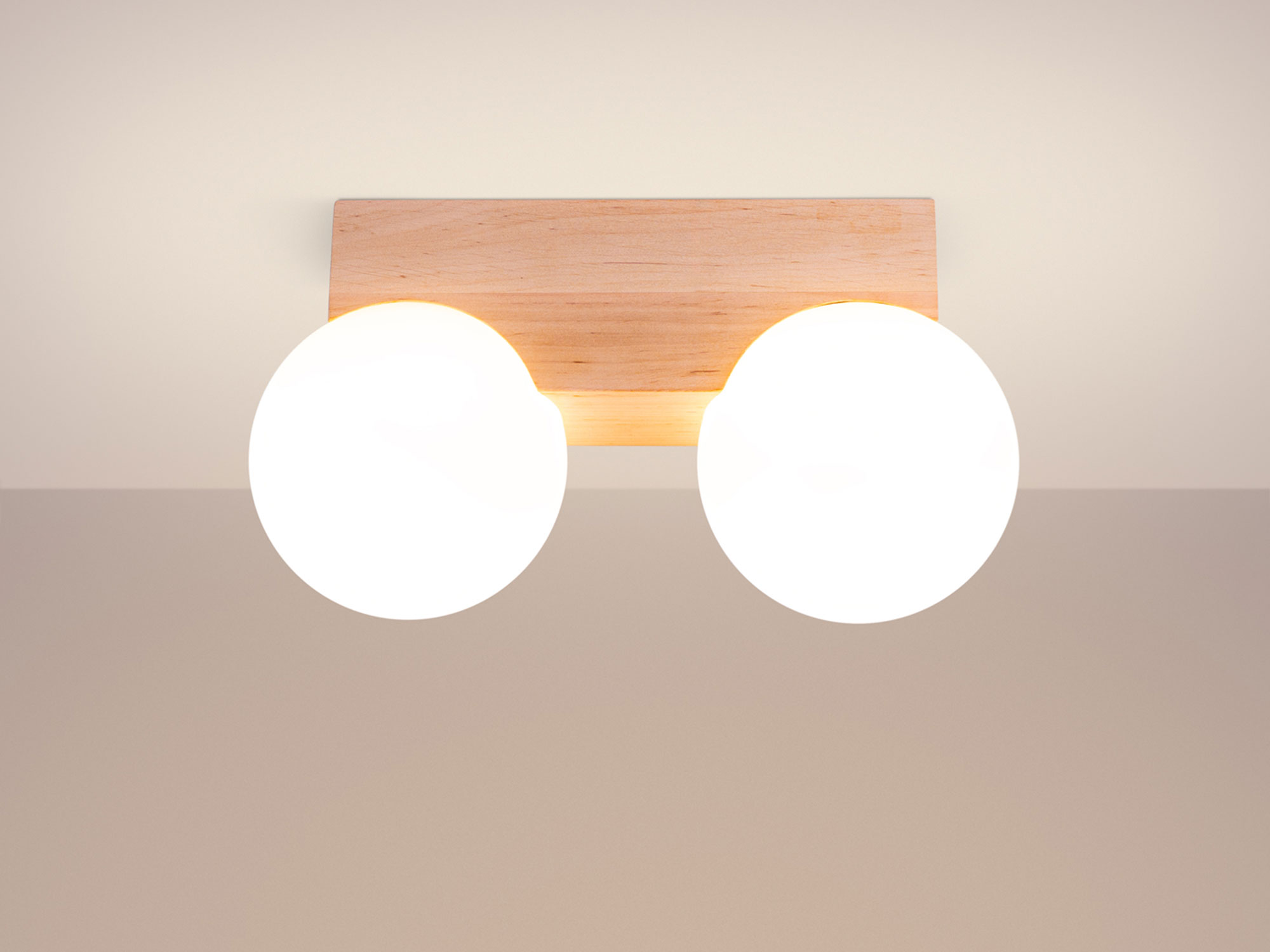 Plafon BOLDO 2 naturalne drewno to propozycja dla osób, które szukają oświetlenia łączącego funkcjonalność z estetyką. Minimalistyczny design, ciepły odcień naturalnego drewna i białe klosze tworzą harmonijną całość, która wprowadza do wnętrza przytulność i elegancję. Dzięki dwóm źródłom światła G9 plafon sprawdzi się zarówno w mniejszych pomieszczeniach, jak i jako dodatkowe oświetlenie w salonie, jadalni czy sypialni.