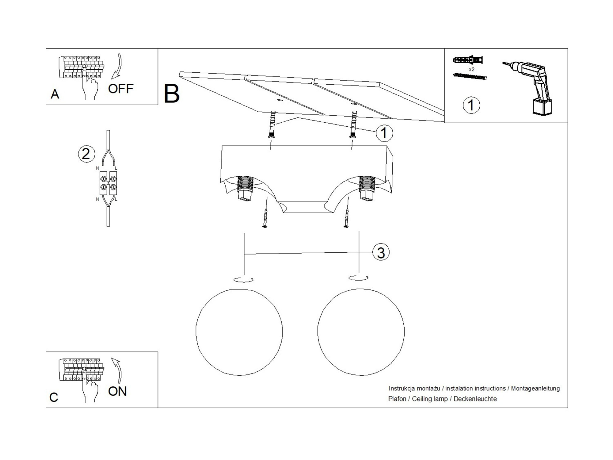 Model wyposażony jest w dwa gniazda na żarówki G9 o mocy do 8W LED każde, co pozwala na dopasowanie intensywności i barwy światła do własnych preferencji. Ciepłe światło stworzy nastrojową aurę w sypialni, a neutralne lub chłodniejsze sprawdzi się w przedpokoju czy kuchni. Dzięki kompaktowym wymiarom (29 cm długości, 12 cm szerokości i 16 cm wysokości) plafon bez problemu zmieści się nawet w niewielkich przestrzeniach.