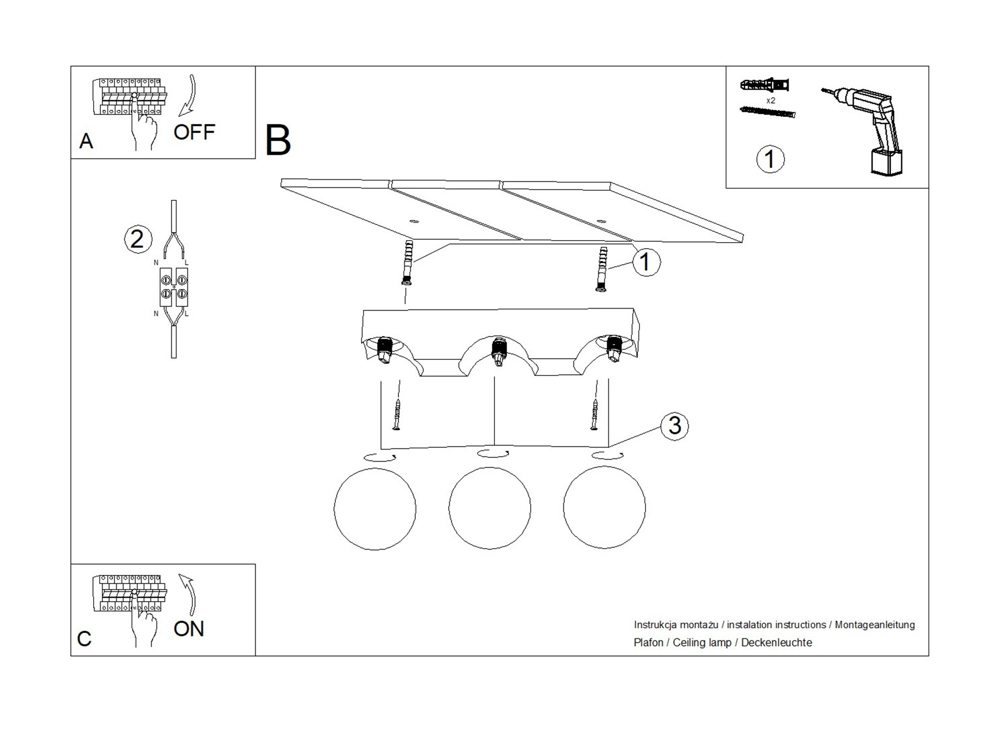 - Ilość źródeł światła: 3