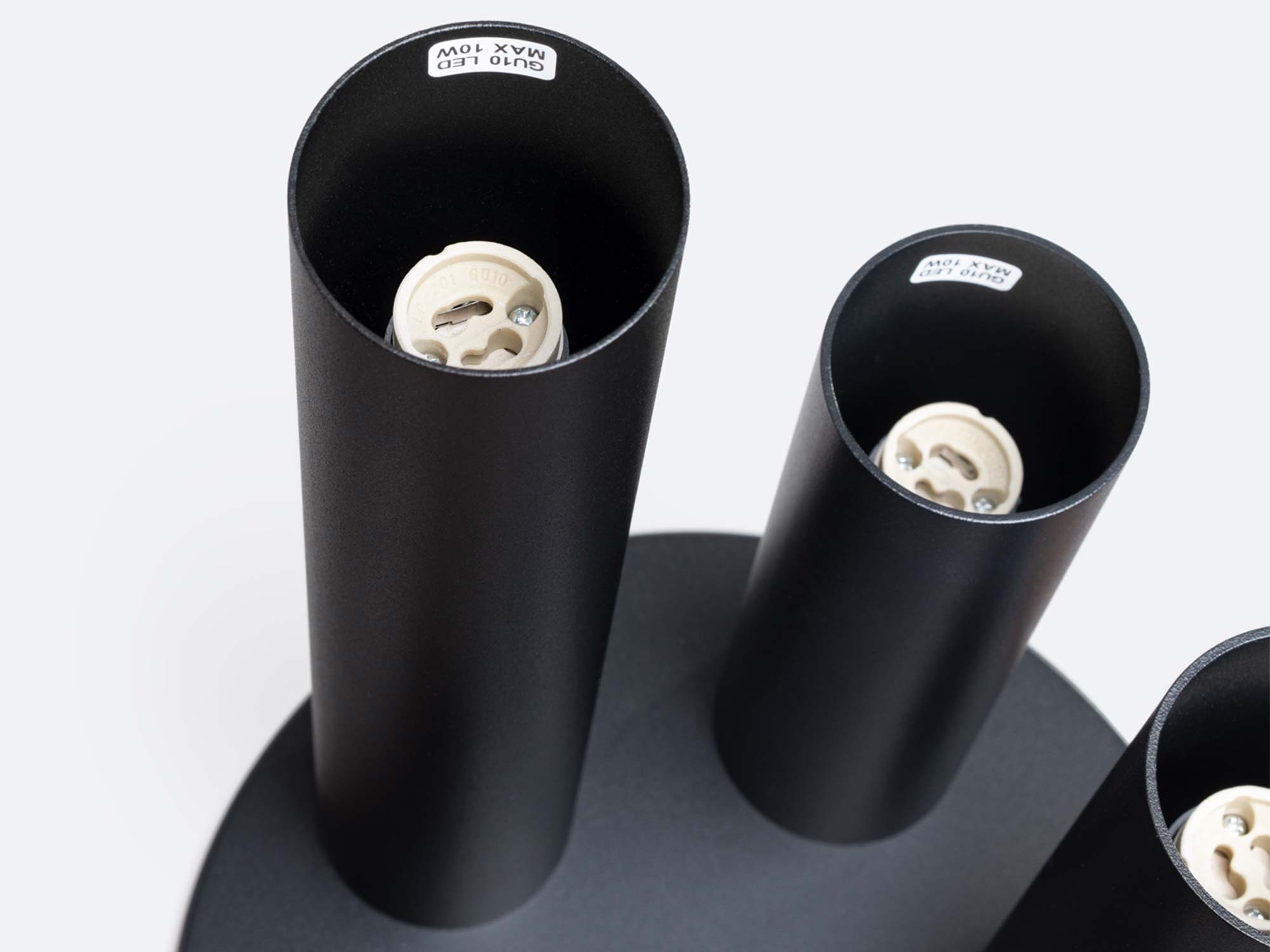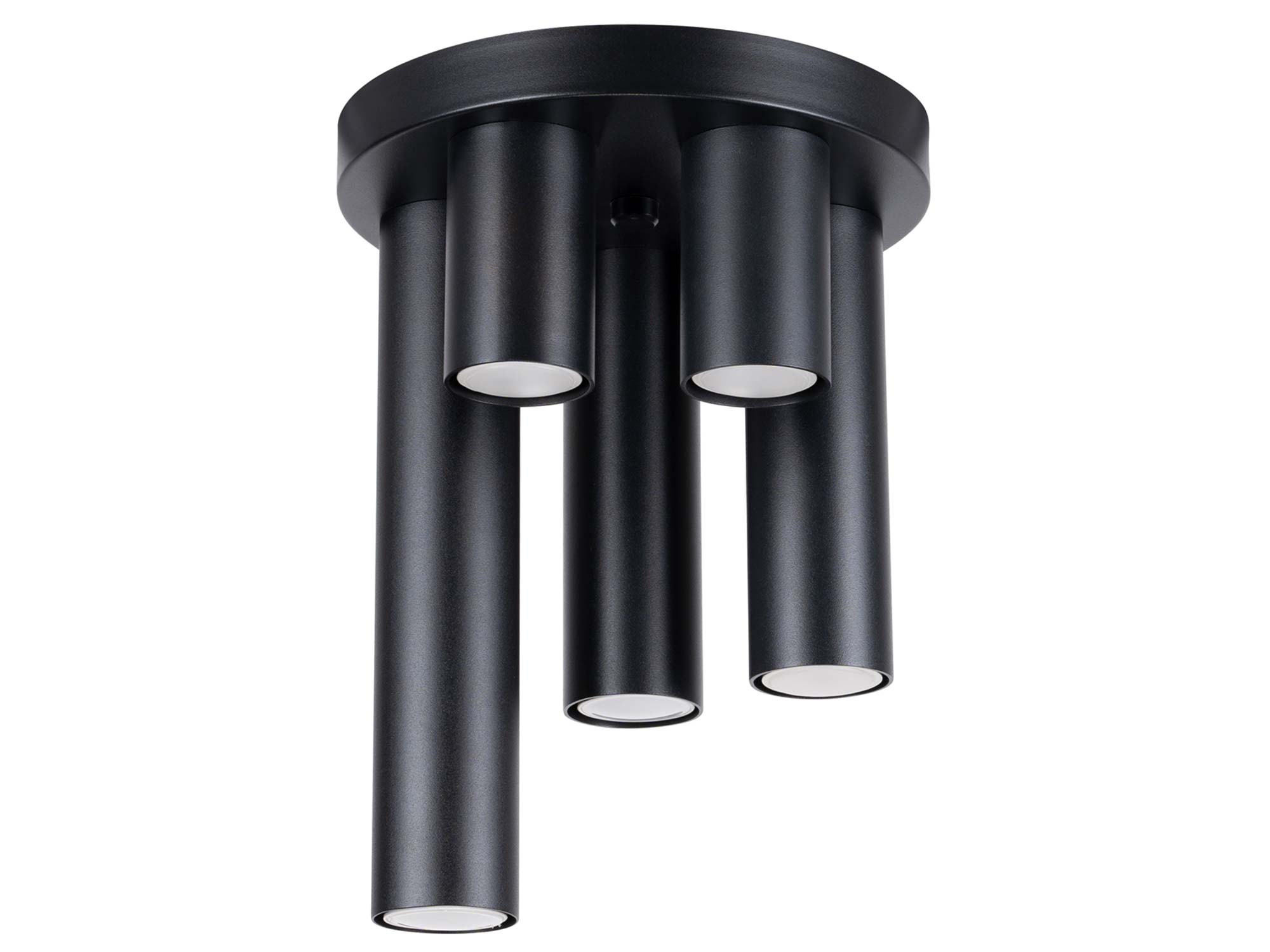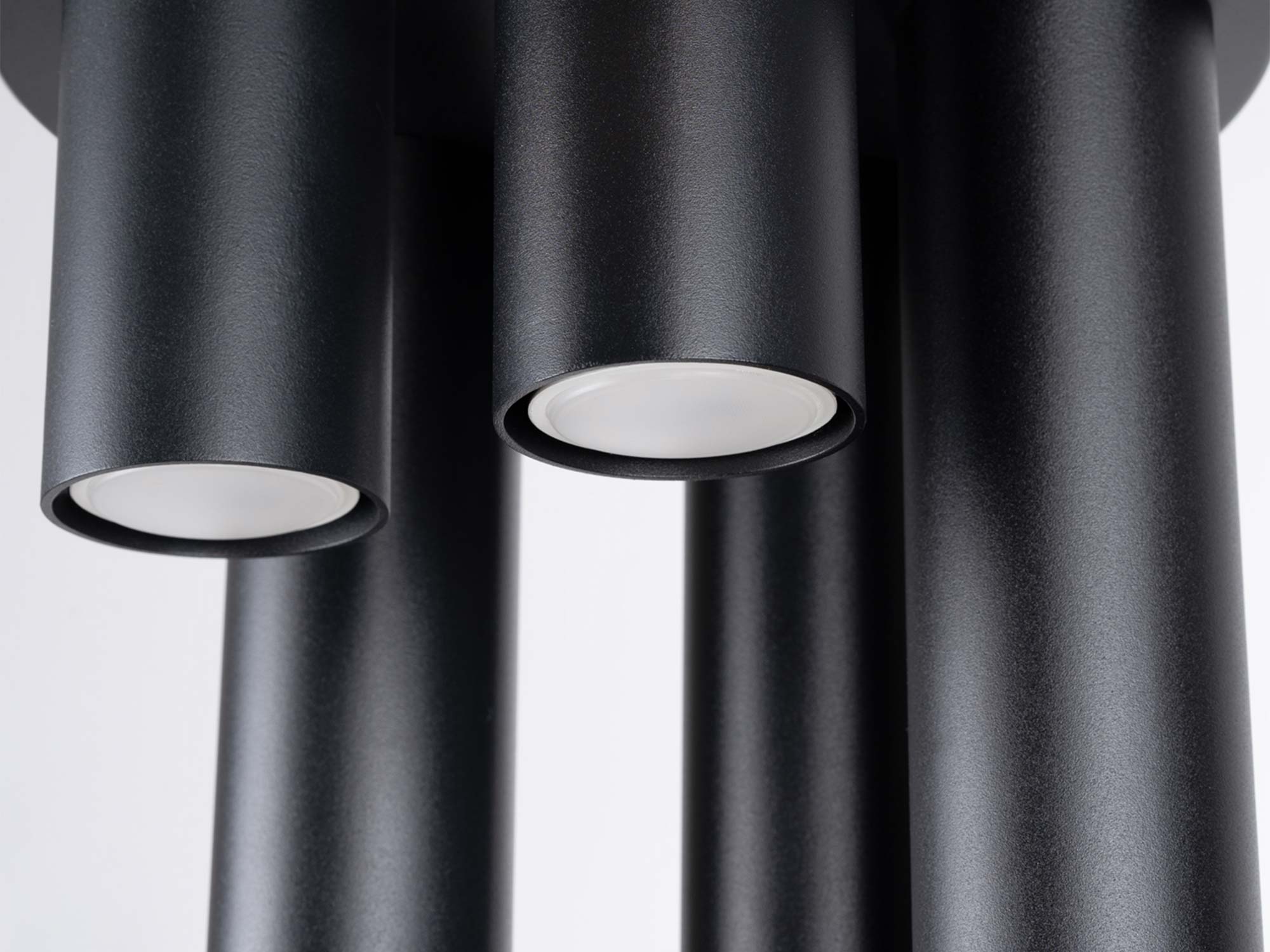 Czarny plafon sufitowy czteropunktowy z długimi tubami cylindrycznymi