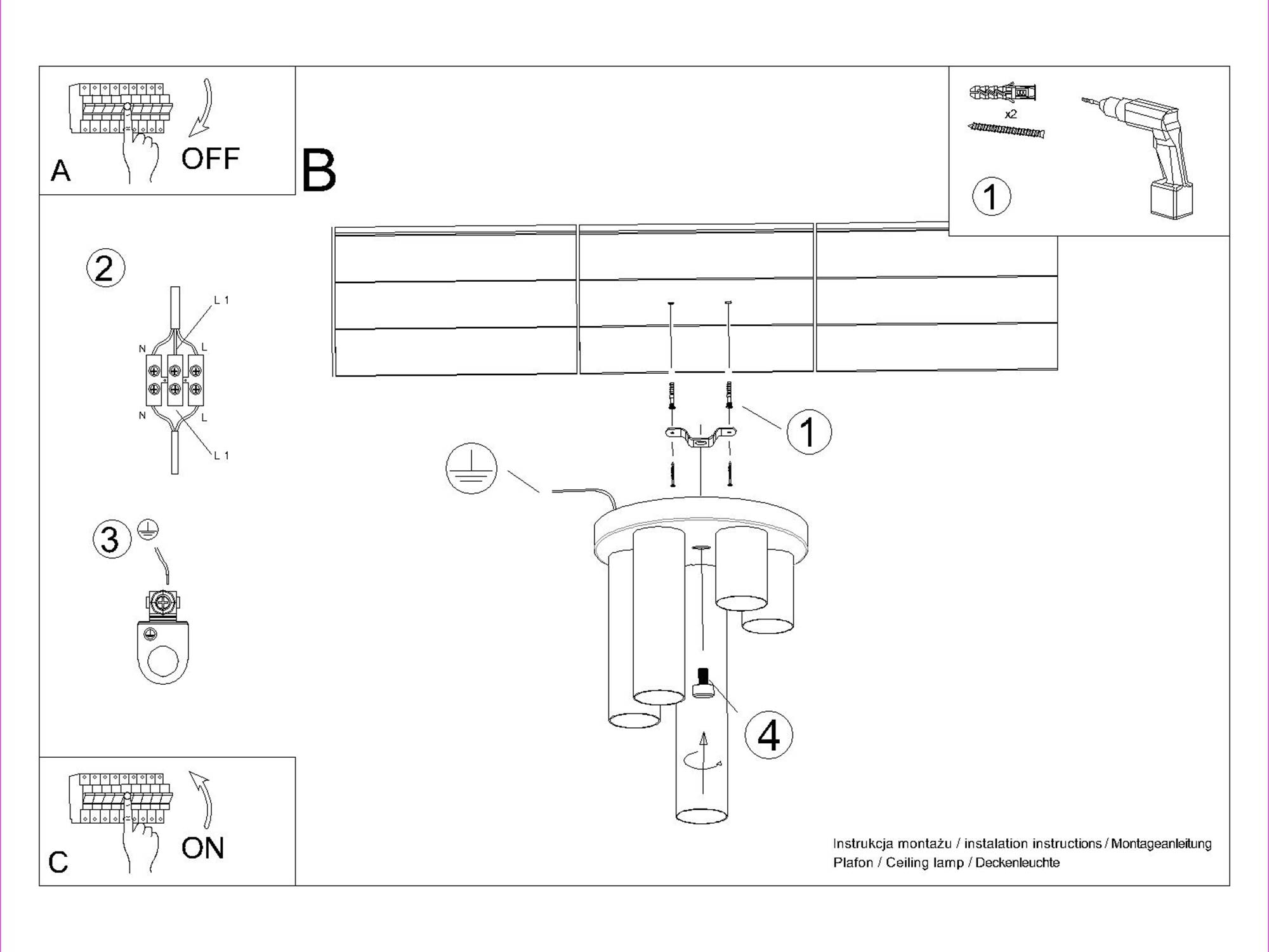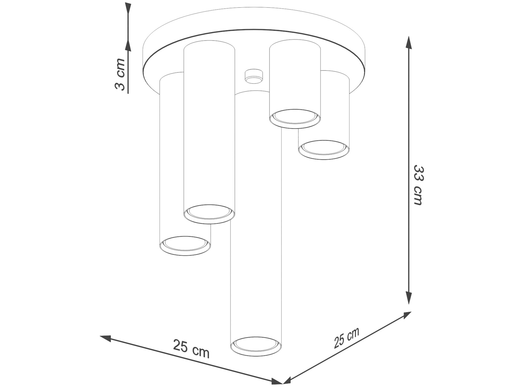 Plafon czarny czteropunktowy na szarym tle z tubami różnej długości