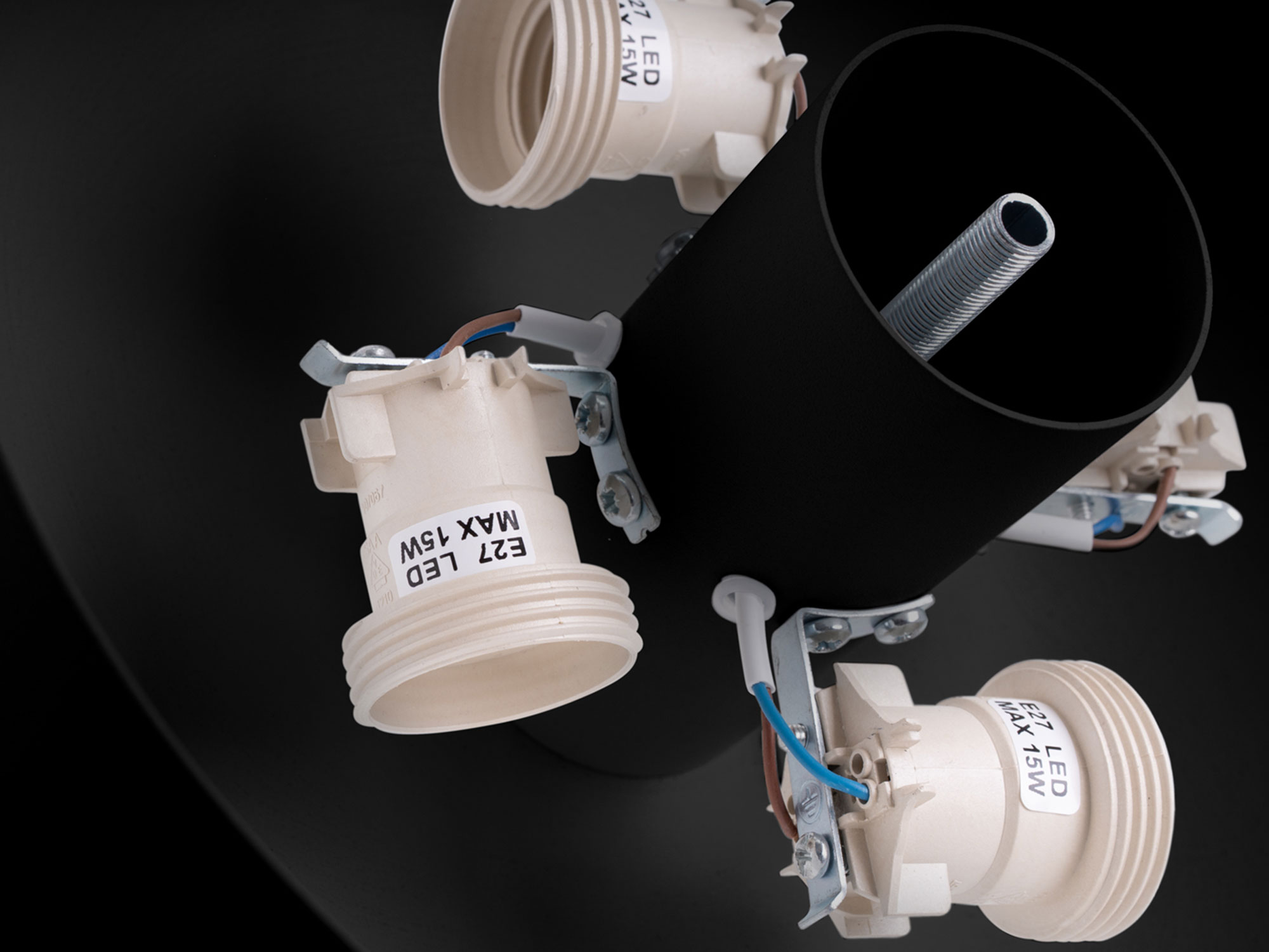 Neutralna forma i elegancka czerń czynią go wszechstronnym dodatkiem, który świetnie komponuje się z jasnymi, kontrastowymi wnętrzami, jak i z ciemniejszymi, bardziej nastrojowymi aranżacjami. Dzięki gwintowi E27 masz pełną swobodę wyboru żarówek LED – możesz zdecydować się na światło ciepłe, neutralne lub chłodne, dopasowując klimat wnętrza do swoich potrzeb.