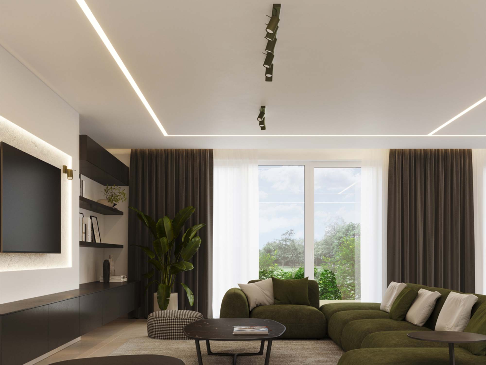 RINTO 2 to nowoczesny plafon, który zachwyca swoją prostą formą i niebanalną kolorystyką. Zieleń oliwkowa to odcień, który od kilku sezonów cieszy się ogromną popularnością w aranżacji wnętrz – jest subtelny, naturalny, a jednocześnie wyrazisty. Doskonale komponuje się z drewnem, szarościami, bielą czy beżem, tworząc spójne i harmonijne zestawienia. Dzięki temu plafon można łatwo wkomponować zarówno w nowoczesne, jak i klasyczne wnętrza.