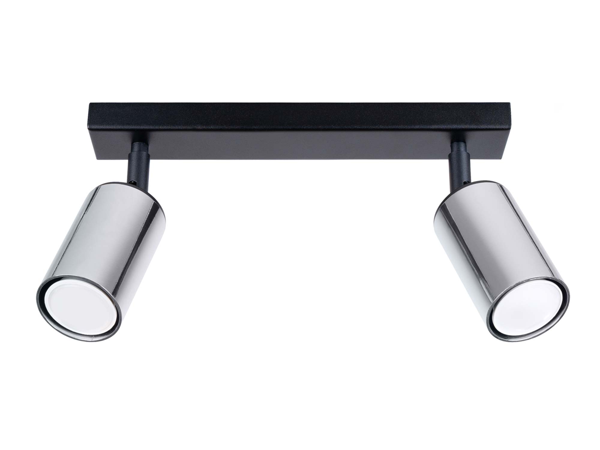 Konstrukcja plafonu wykonana została ze stali, co gwarantuje jego trwałość i odporność na uszkodzenia. Smukłe klosze o wymiarach 6×10 cm rozpraszają światło w sposób ukierunkowany, dzięki czemu możesz podkreślić wybrane elementy wystroju lub stworzyć przyjemny nastrój we wnętrzu. Dwa punkty świetlne z gwintem GU10 dają możliwość zamontowania żarówek LED o mocy do 10W każda – co pozwala dostosować barwę i intensywność światła do indywidualnych potrzeb.