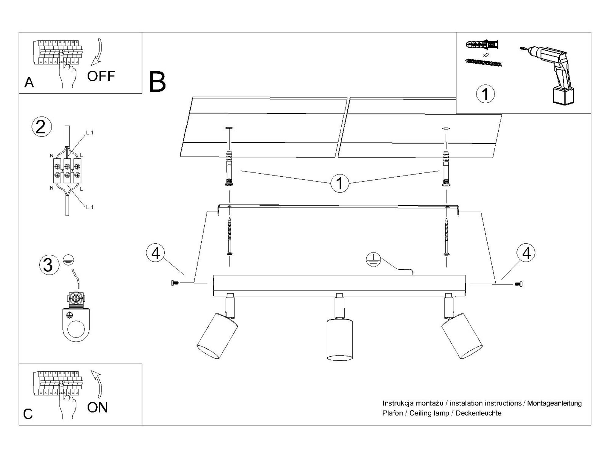 Źródło światła: GU10, 3x max 10W LED, ~230V, 50Hz, IP20, klasa ochronności I