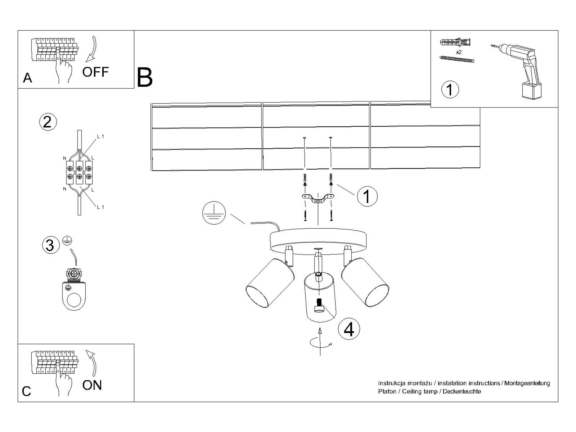 Solidna stalowa konstrukcja zapewnia wytrzymałość i odporność na codzienne użytkowanie. Trzy źródła światła z gwintem GU10 umożliwiają zastosowanie żarówek LED o mocy do 10W każda. To rozwiązanie gwarantuje nie tylko energooszczędność, ale również pełną swobodę wyboru barwy światła – od ciepłego, przytulnego po neutralne lub chłodne, sprzyjające pracy i koncentracji.