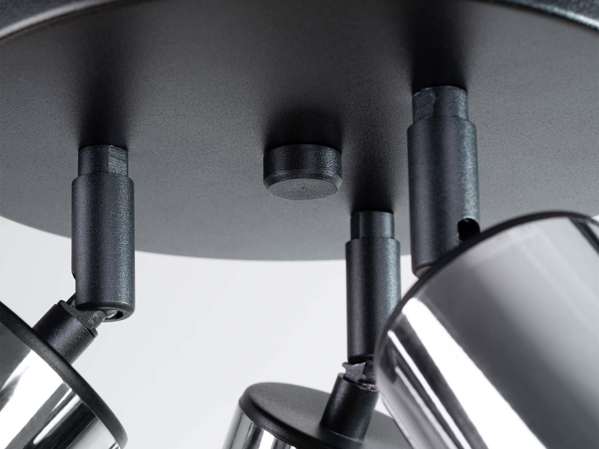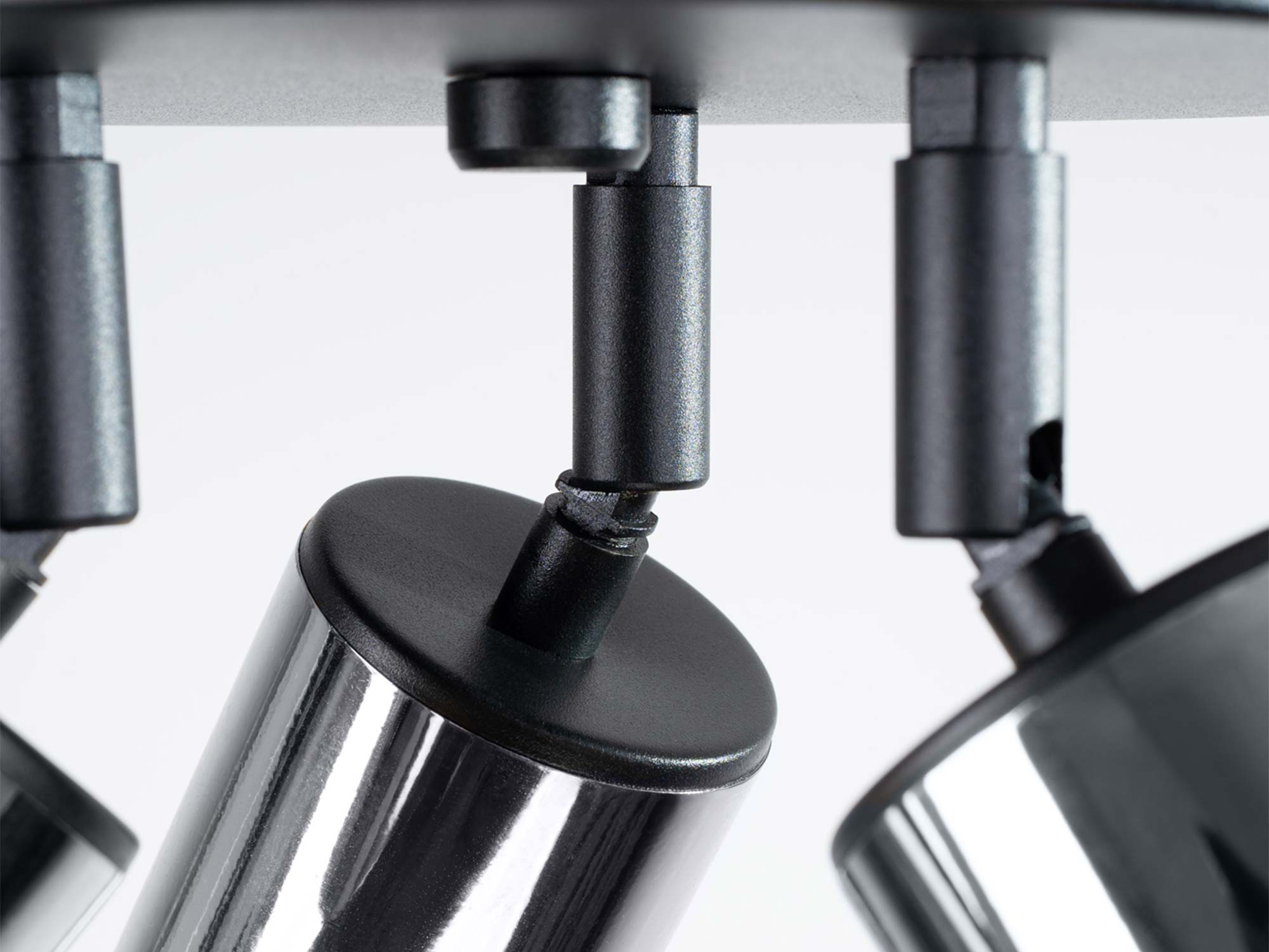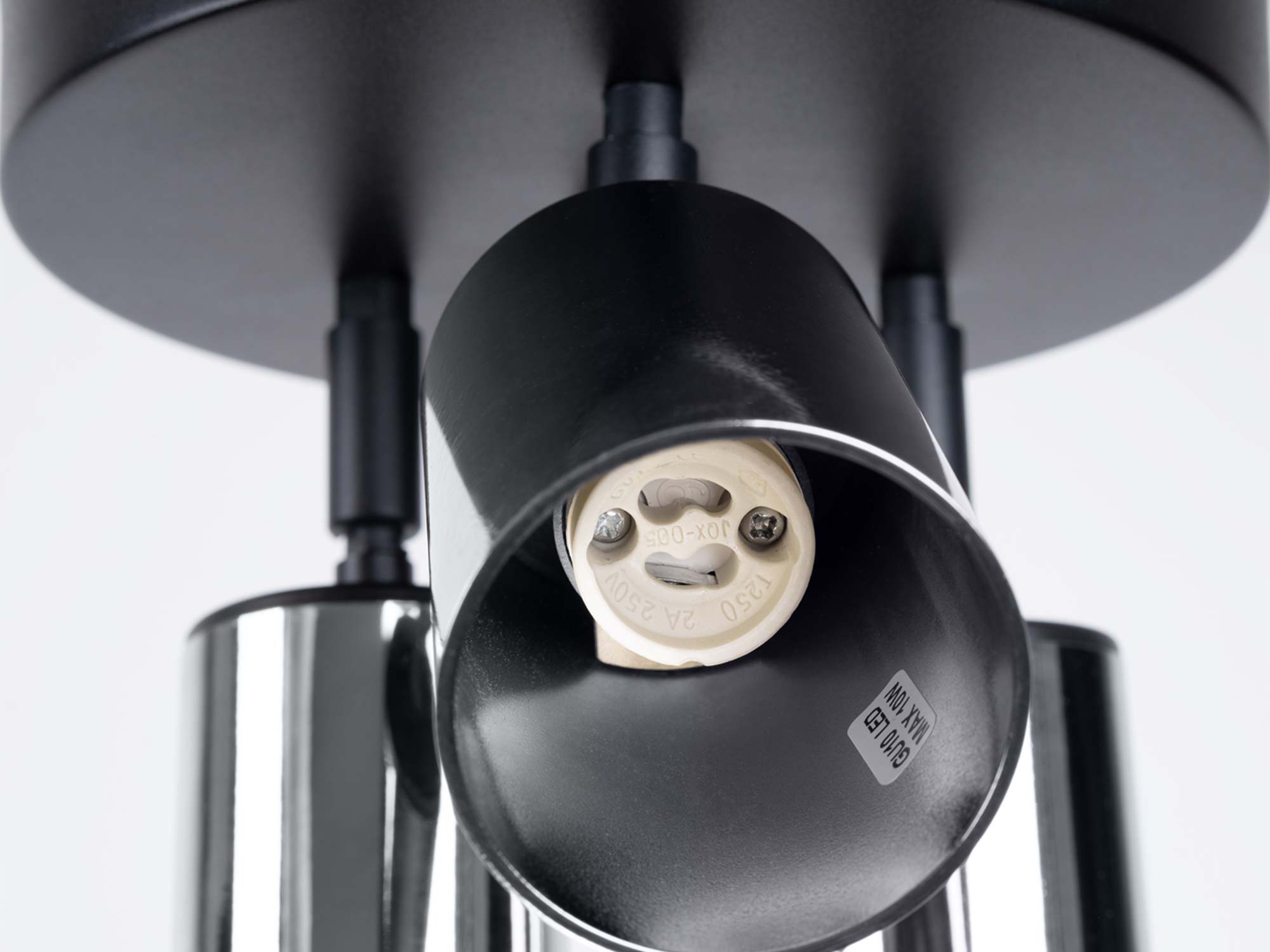 Czerń oprawy nadaje lampie elegancji i nowoczesnego charakteru, natomiast chromowane detale dodają jej lekkości i luksusowego połysku. Dzięki temu plafon sprawdzi się w wielu aranżacjach – od loftowych, poprzez minimalistyczne, aż po modern classic.
