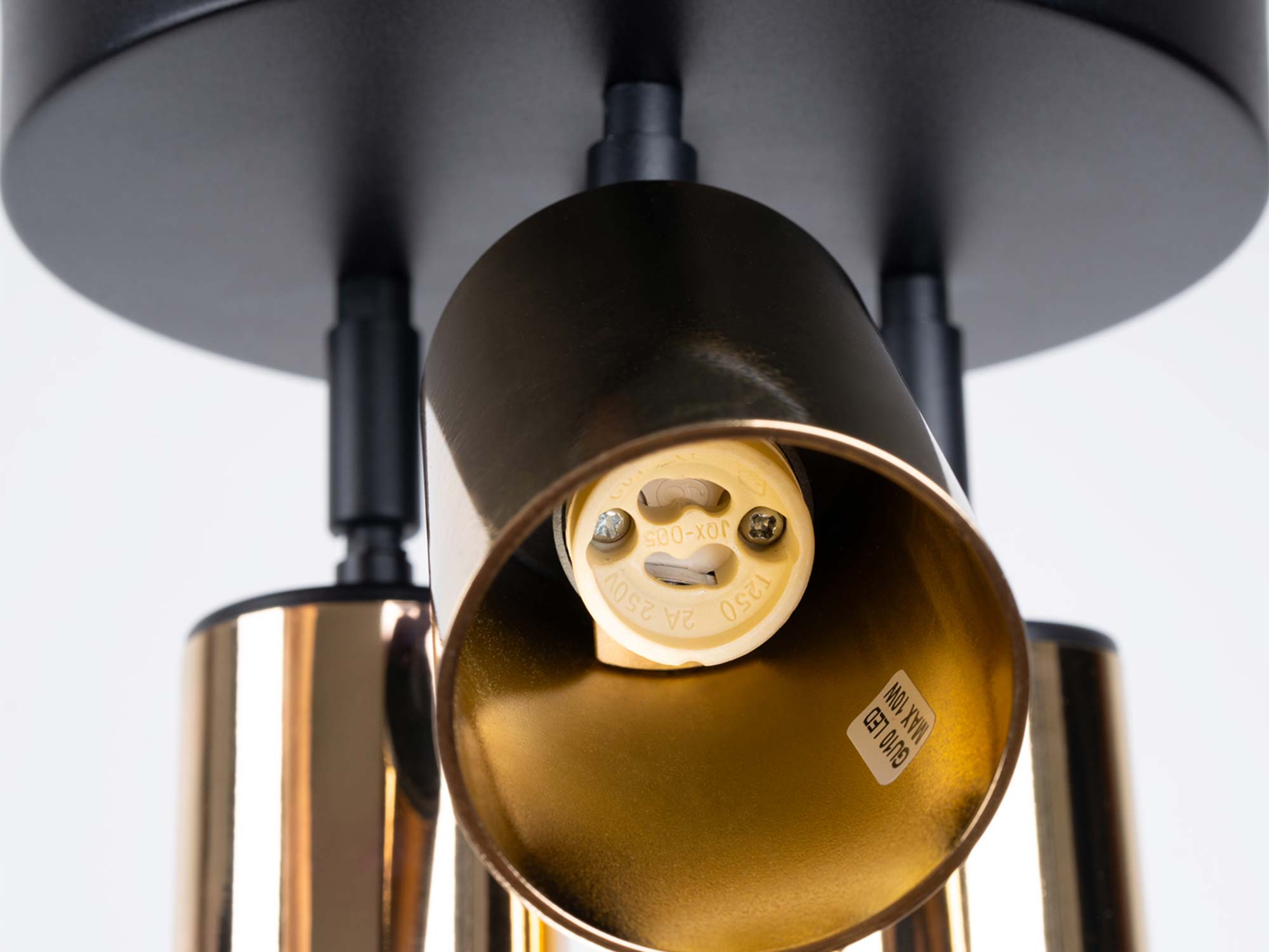Czarny kolor obudowy dodaje elegancji i klasy, a złote wnętrze kloszy ociepla barwę światła, tworząc przytulną atmosferę. To zestawienie kolorystyczne idealnie pasuje zarówno do nowoczesnych, jak i klasycznych aranżacji. Dzięki możliwości zastosowania żarówek LED (3x max 10W), plafon zapewnia energooszczędne użytkowanie przy zachowaniu wysokiej funkcjonalności.