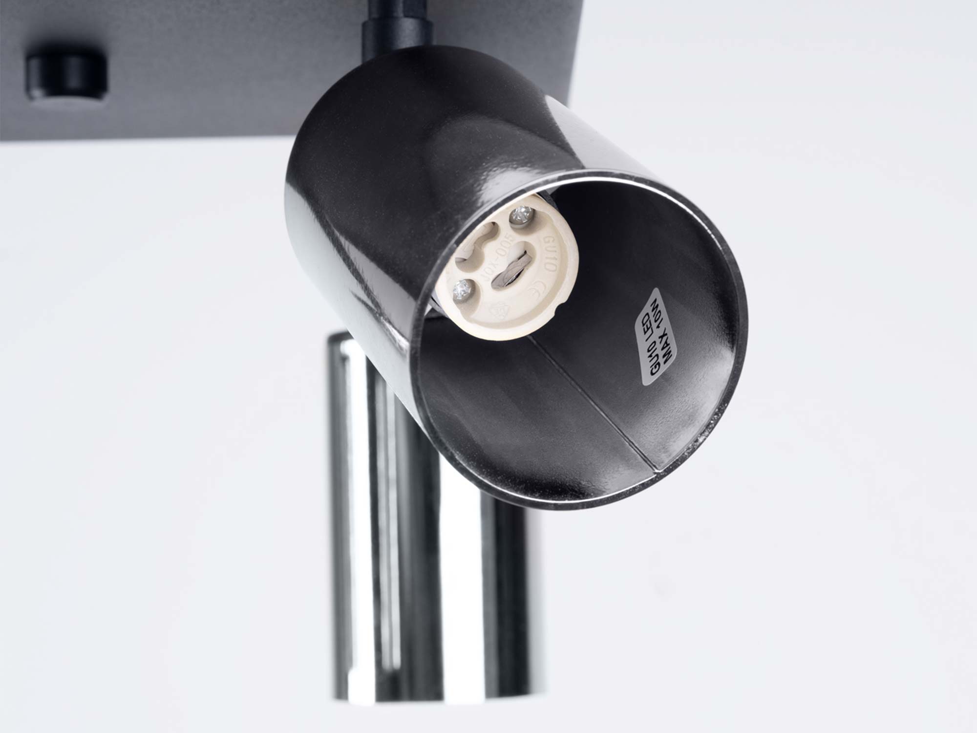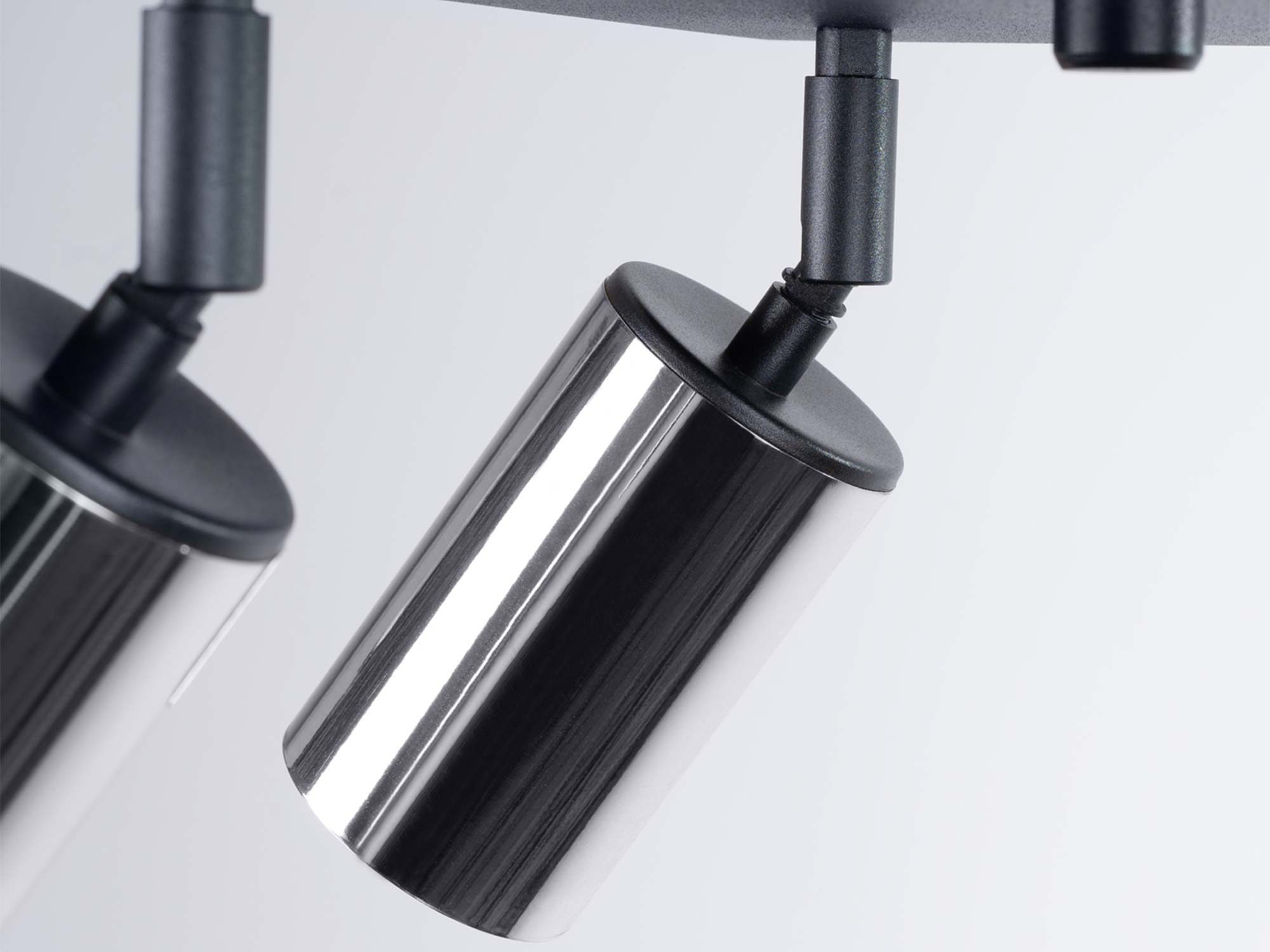 Połączenie czerni i chromu sprawia, że plafon prezentuje się wyjątkowo elegancko. To kontrast, który pasuje do wnętrz industrialnych, loftowych, nowoczesnych, a nawet klasycznych. Chromowane akcenty odbijają światło, nadając lampie lekkości i nowoczesnego połysku.