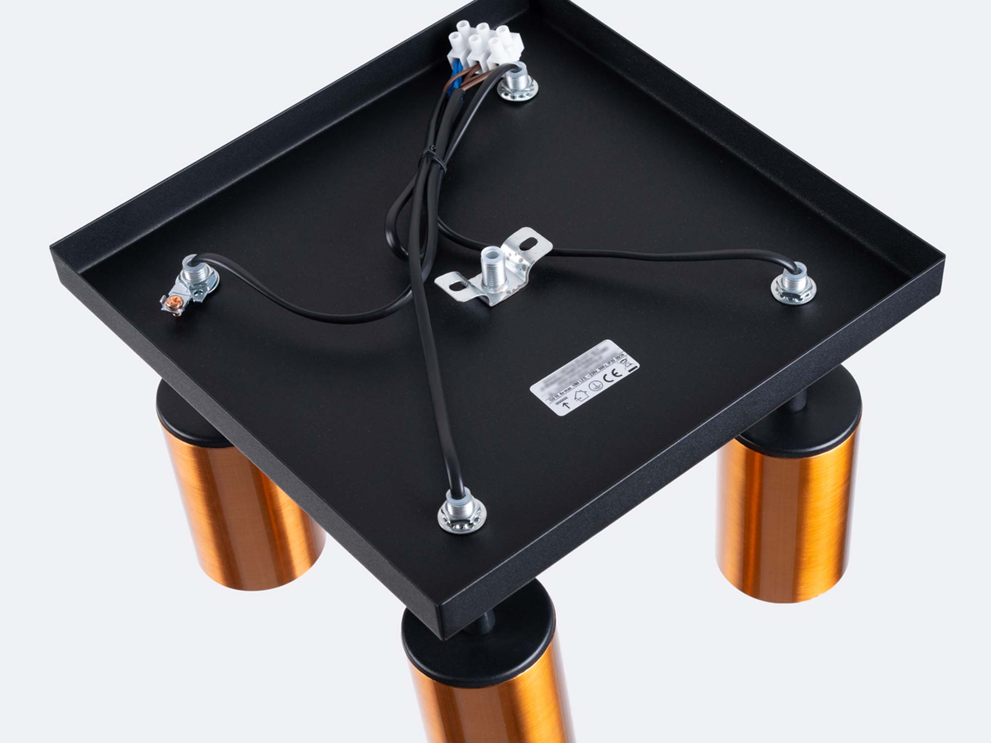 Konstrukcja wykonana z wysokiej jakości stali zapewnia trwałość i odporność na uszkodzenia, a klasyczne zestawienie czerni i miedzi nadaje wnętrzu wyjątkowego charakteru. Miedziane akcenty pięknie odbijają światło, tworząc ciepłą i przyjemną atmosferę, która zachwyci zarówno domowników, jak i gości.