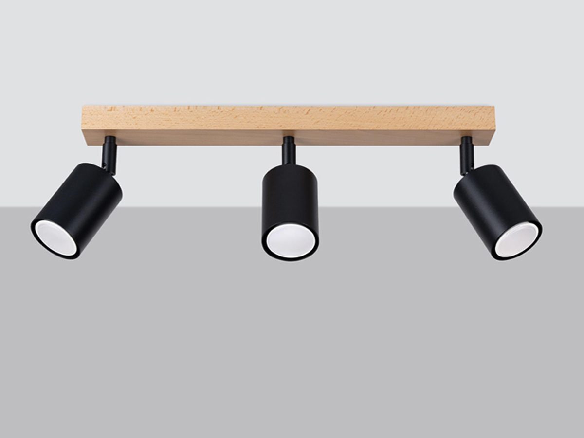 Lampa Sufitowa Industrial Czarna Stal/Drewno – CLARIS 3L